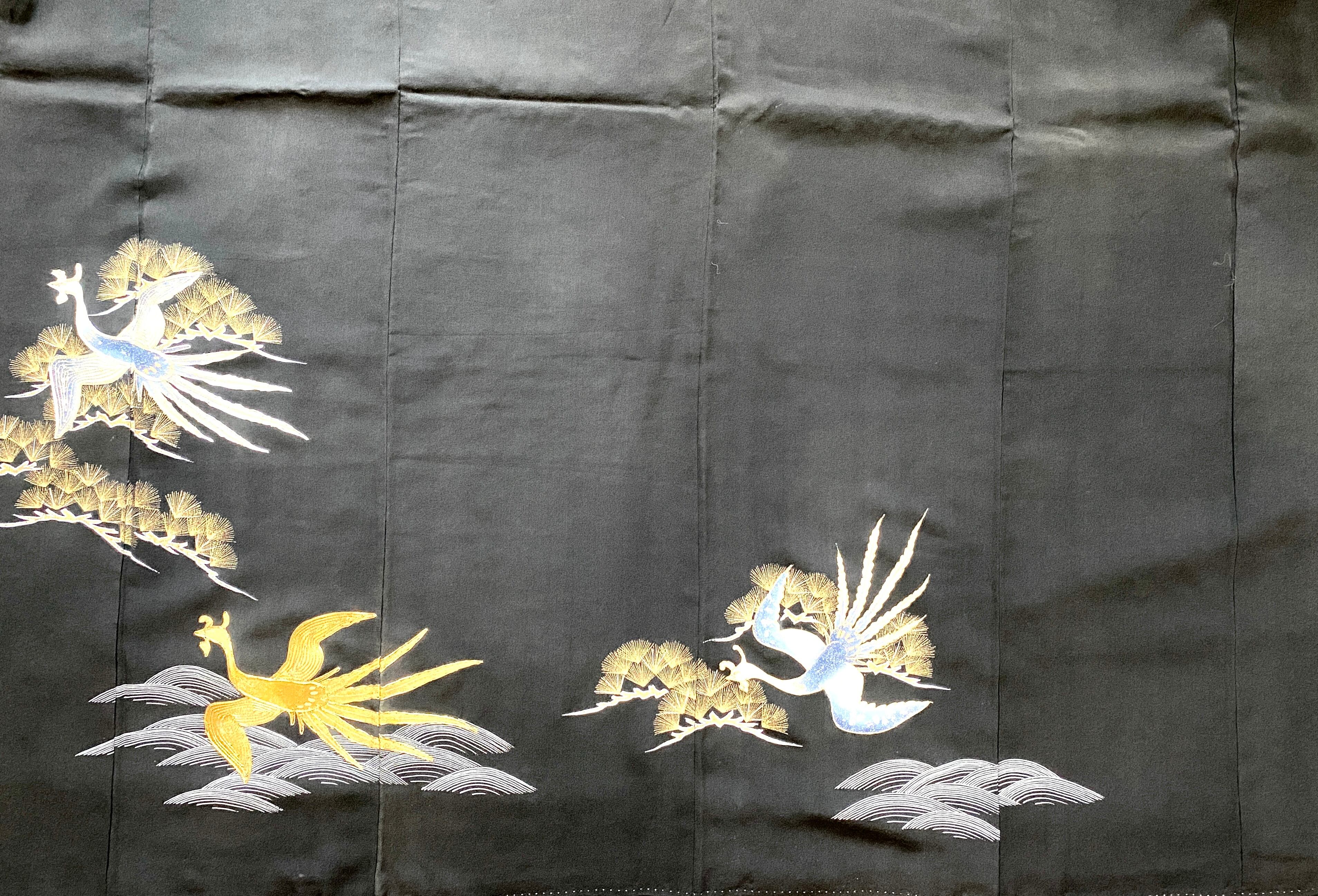 黒留袖着物リメイクウエストゴムロングスカート送料無料フリーサイズ1点物黒留袖着物リメイクウエストゴムロングスカートハンドメイド黒留袖着物リメイクロングスカート1点物NO.1340