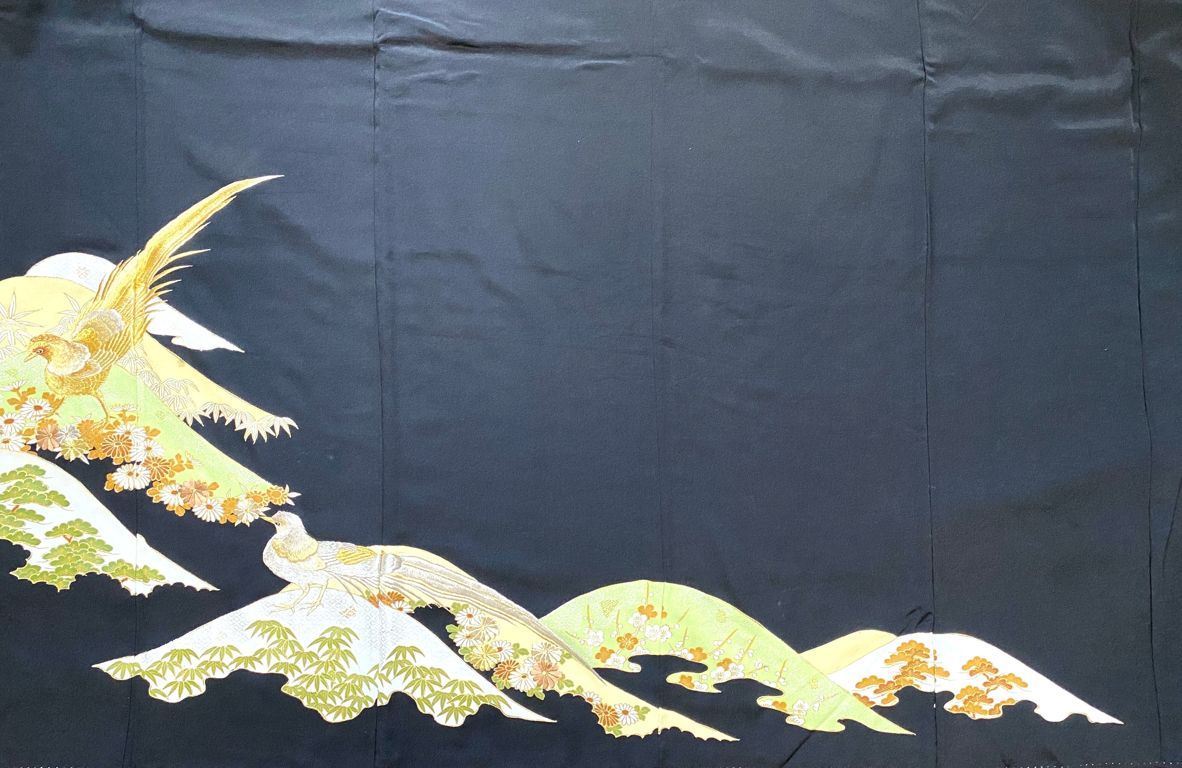 黒留袖着物リメイクウエストゴムロングスカート送料無料フリーサイズ1点物黒留袖着物リメイクウエストゴムロングスカートハンドメイド黒留袖着物リメイクロングスカート1点物NO.1346