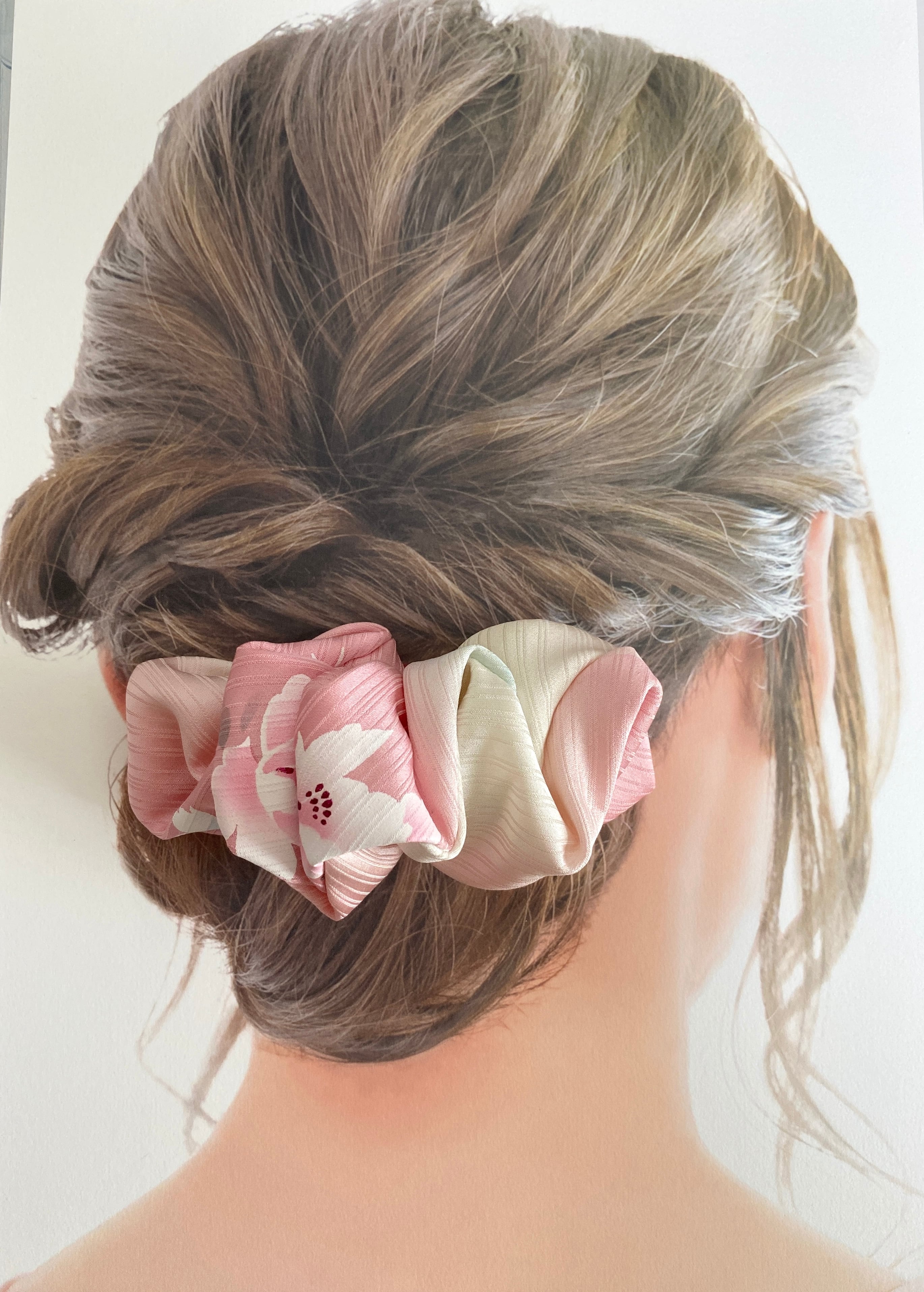 着物布生地なので柔らかで薄い布生地な為触り心地が良く滑らかで髪結びの装着がとても良いシュシュです。