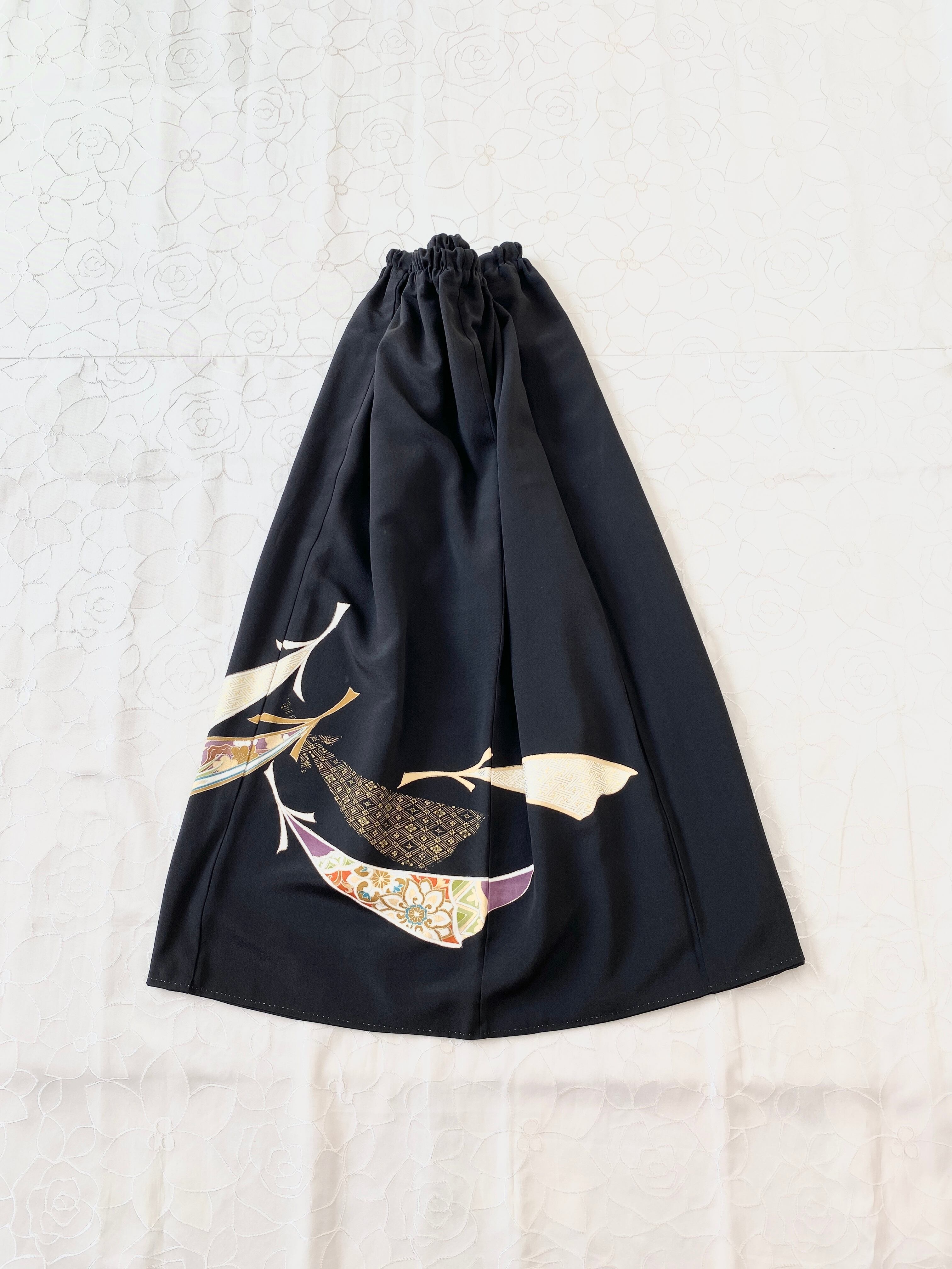 黒留袖着物リメイクウエストゴムロングスカート送料無料フリーサイズ1点物黒留袖着物リメイクウエストゴムロングスカートハンドメイド黒留袖着物リメイクロングスカート1点物NO.1358