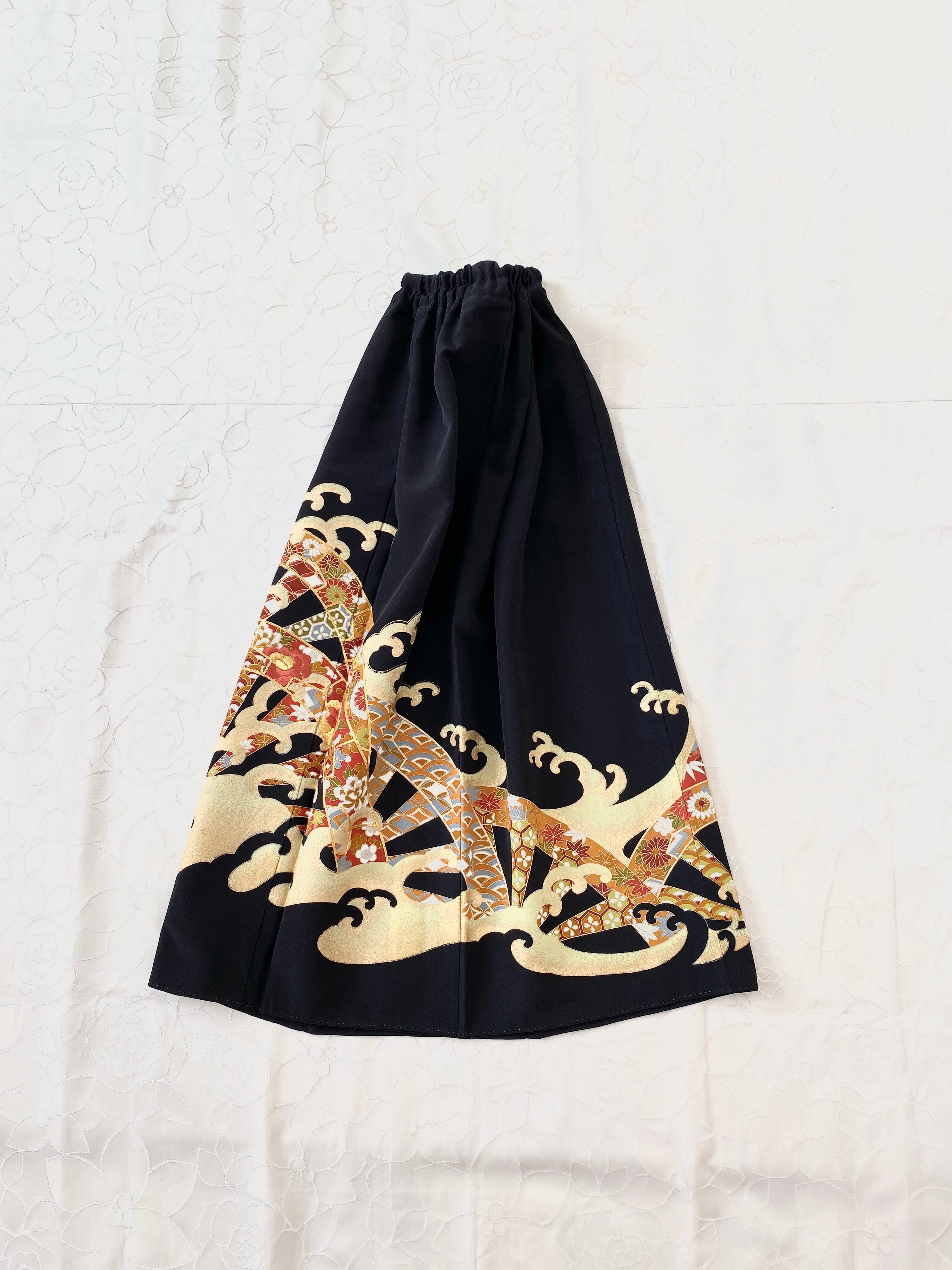黒留袖着物リメイクウエストゴムロングスカートフリーサイズ