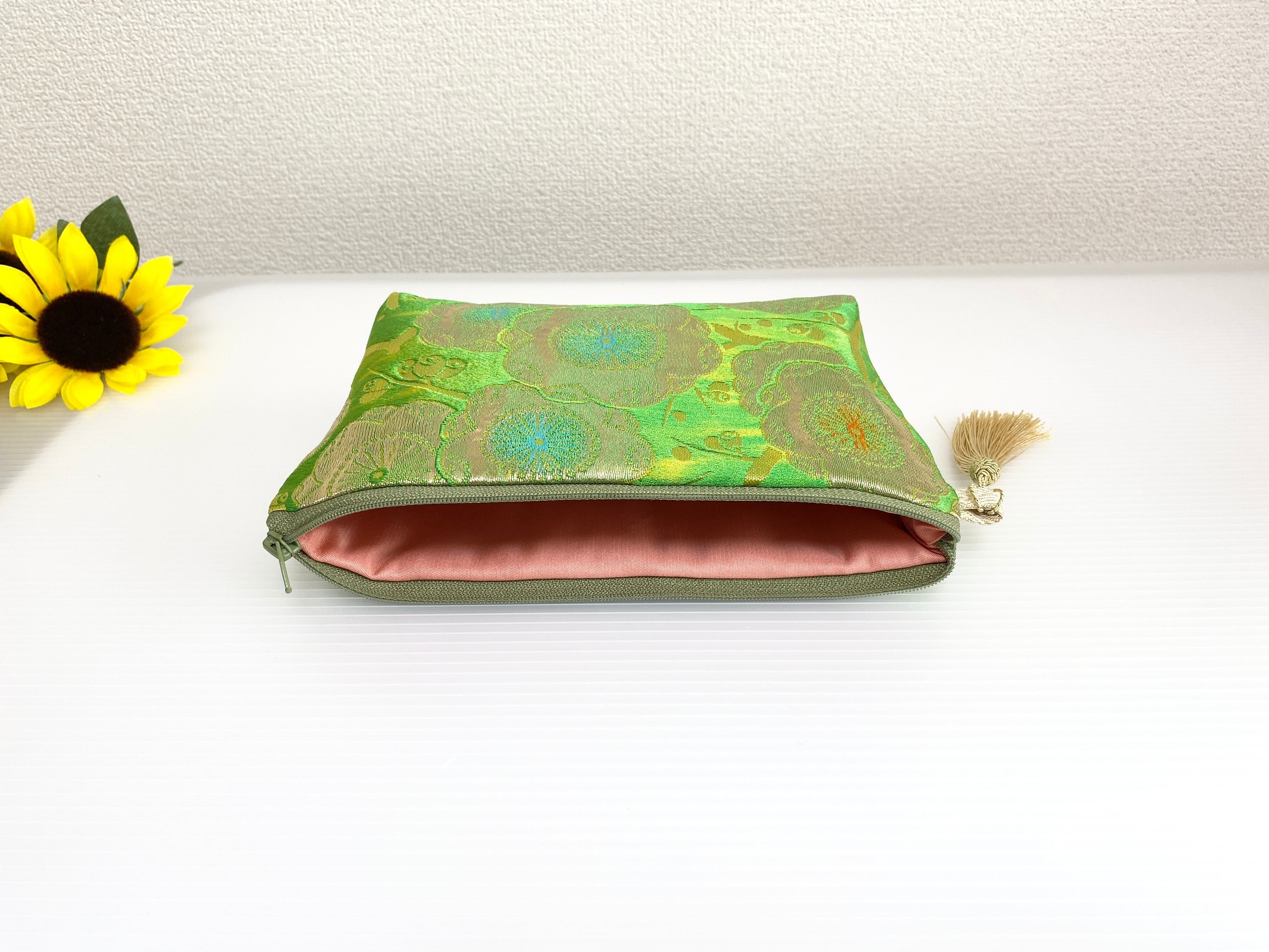 裏生地にも帯を使用しておりますのでしっかりとした造りの帯リメイクポーチです。