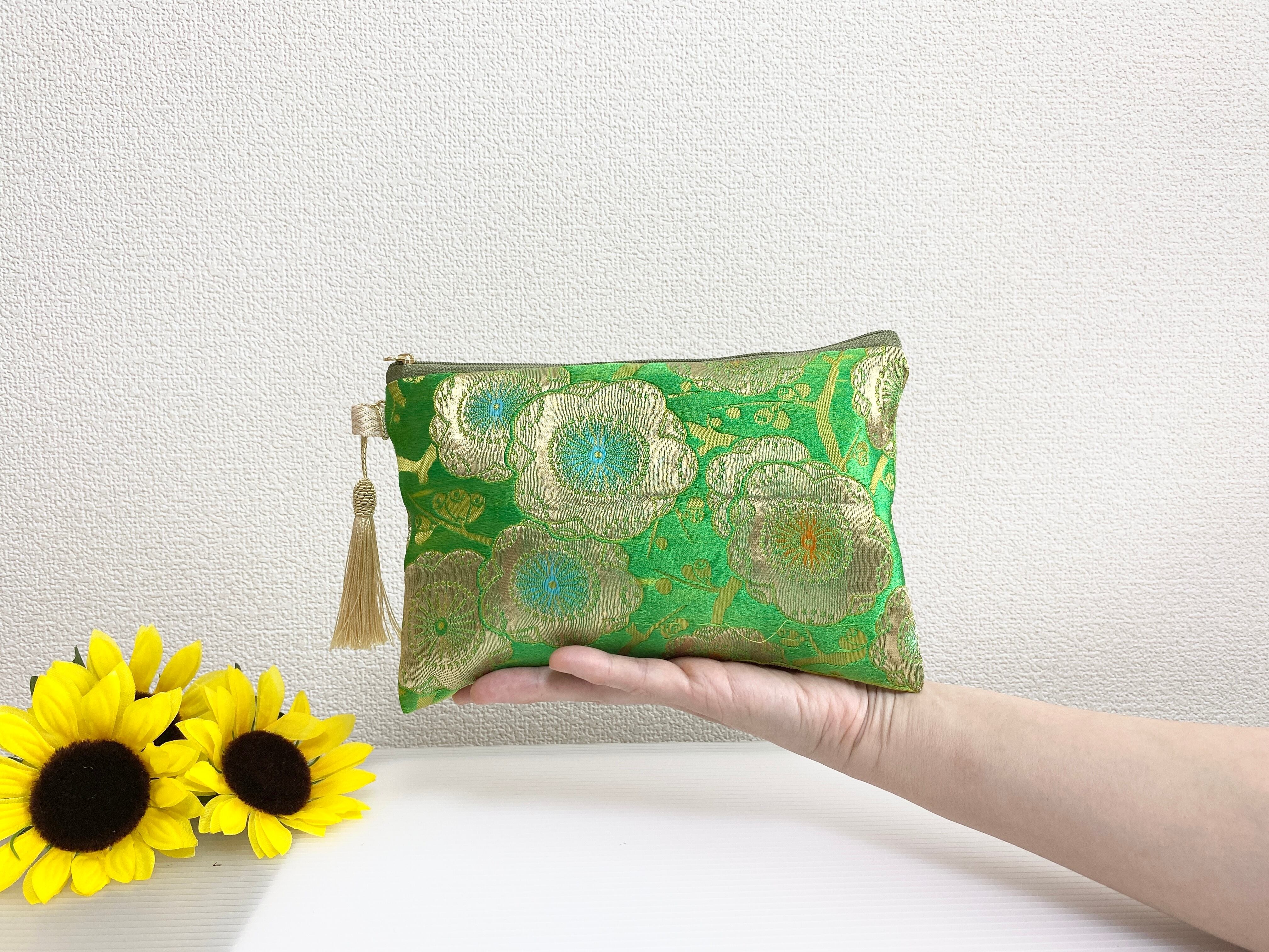 裏生地にも帯を使用しておりますのでしっかりとした造りの帯リメイクポーチです。