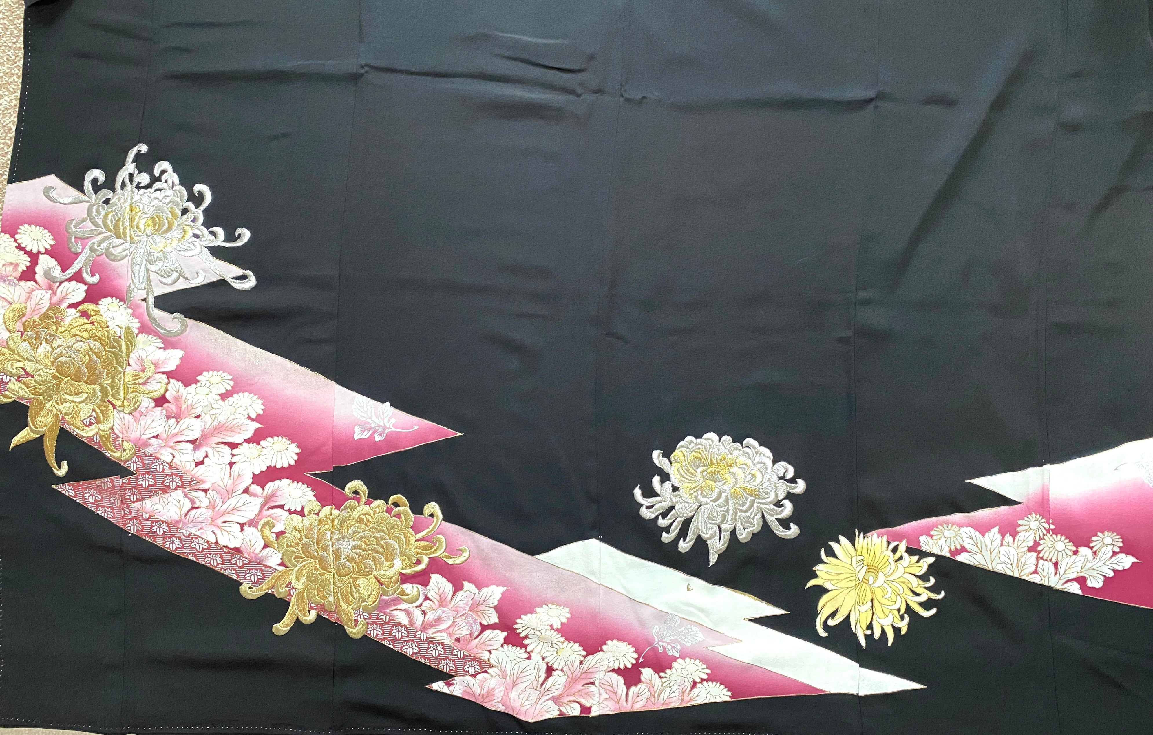 黒留袖着物リメイクウエストゴムロングスカート送料無料フリーサイズ1点物黒留袖着物リメイクウエストゴムロングスカートハンドメイド黒留袖着物リメイクロングスカート1点物NO.1366