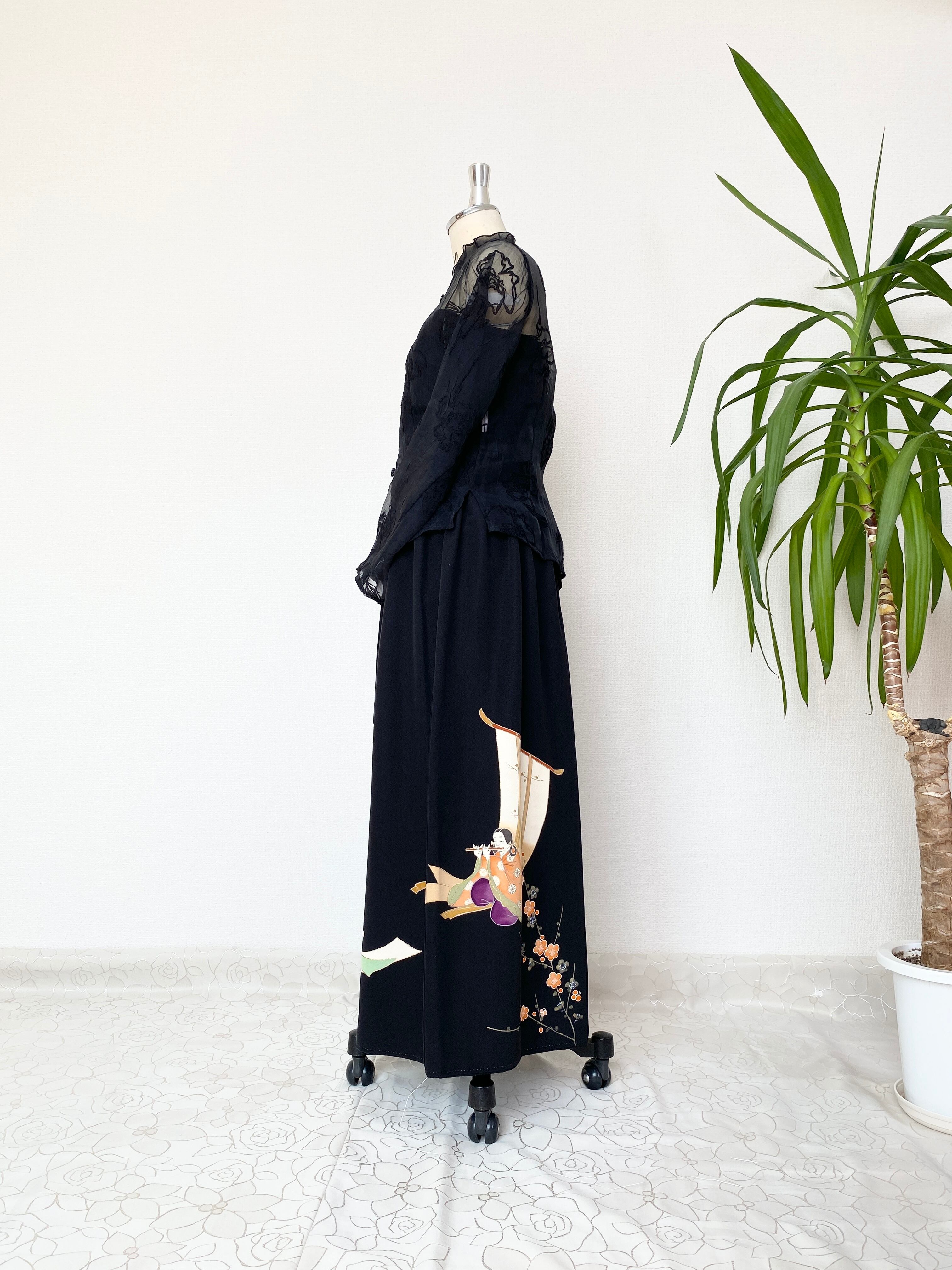 黒留袖着物リメイクウエストゴムロングスカートフリーサイズ