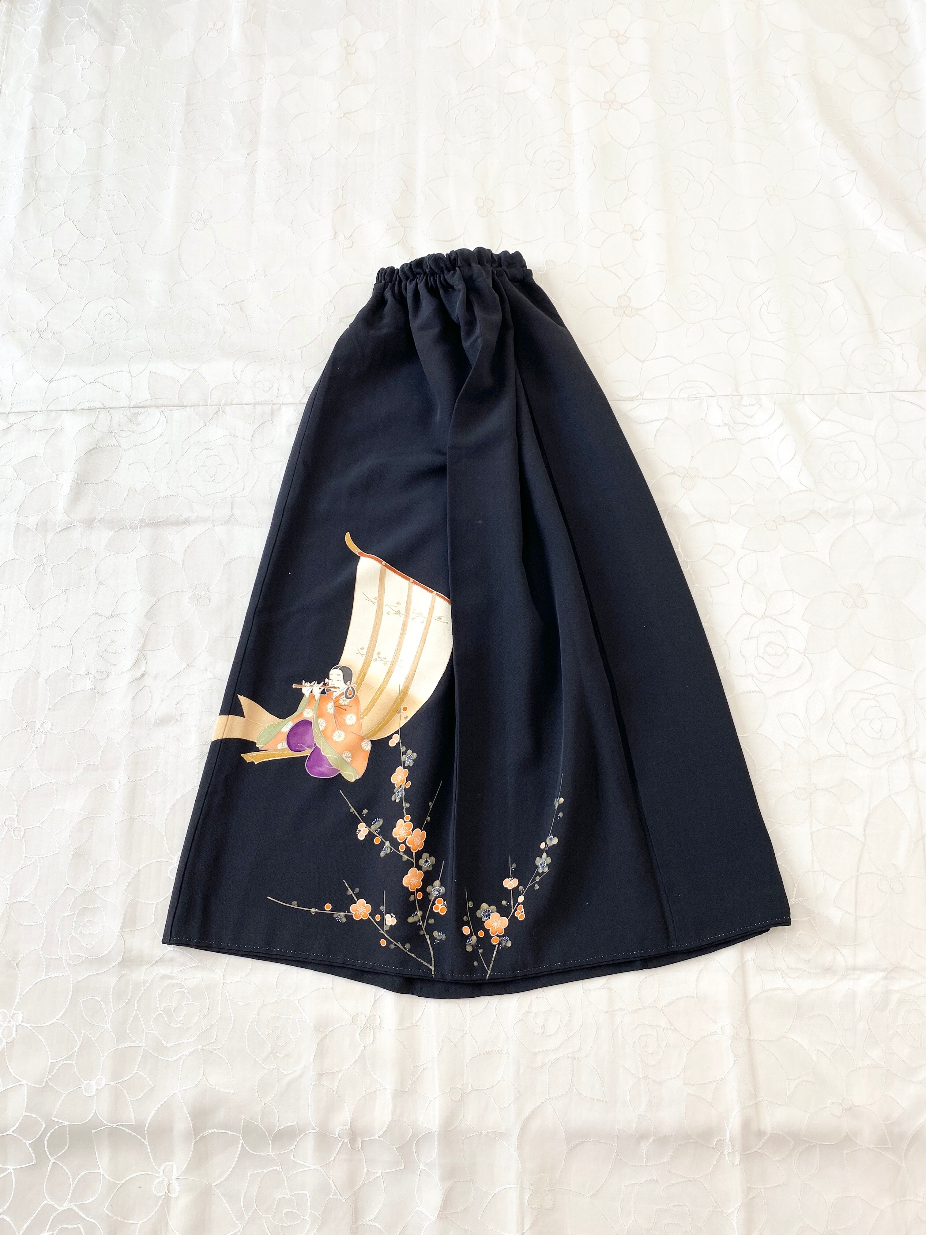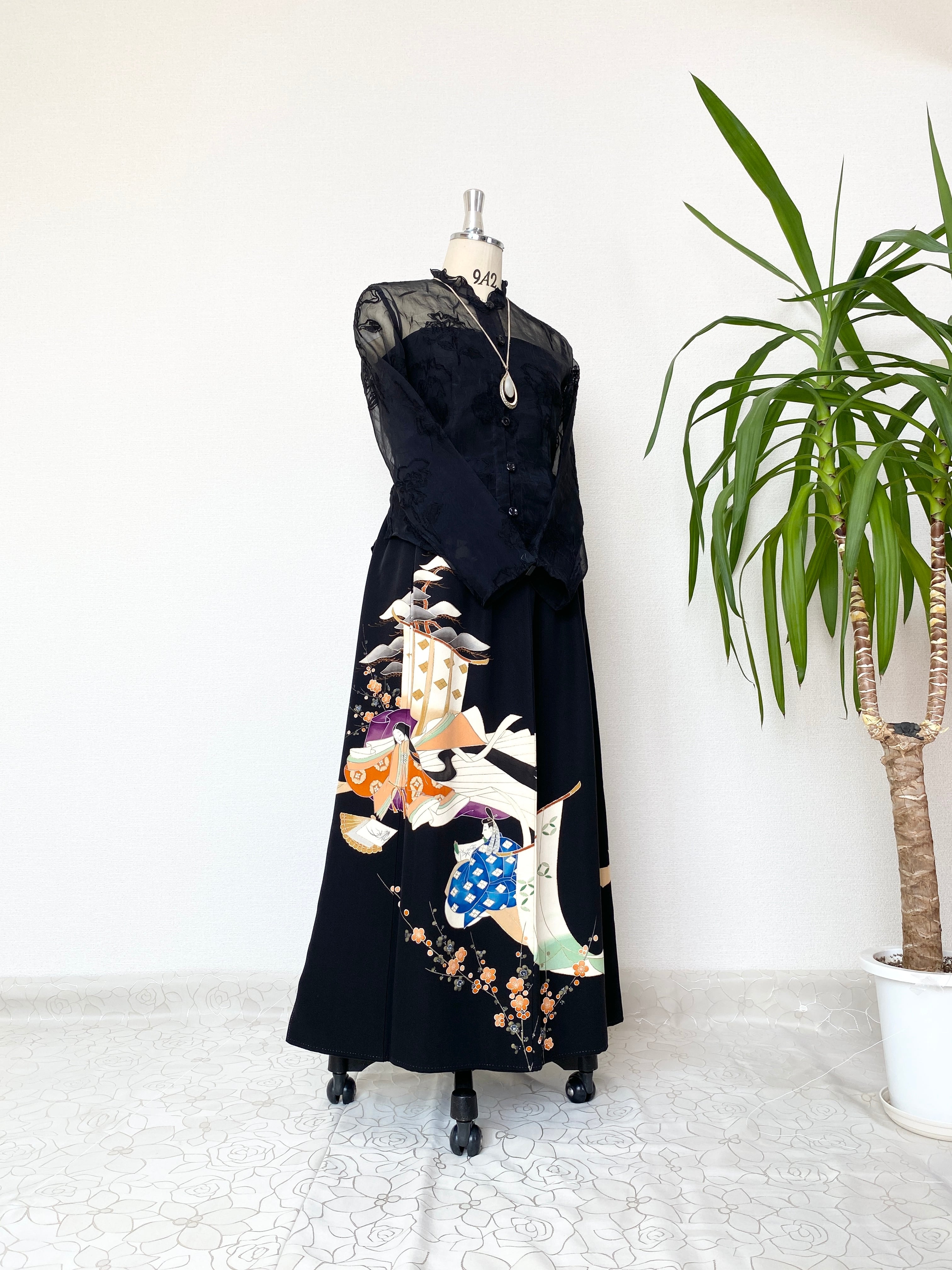 黒留袖着物リメイクウエストゴムロングスカート送料無料フリーサイズ1点物黒留袖着物リメイクウエストゴムロングスカートハンドメイド黒留袖着物リメイクロングスカート1点物NO.1384