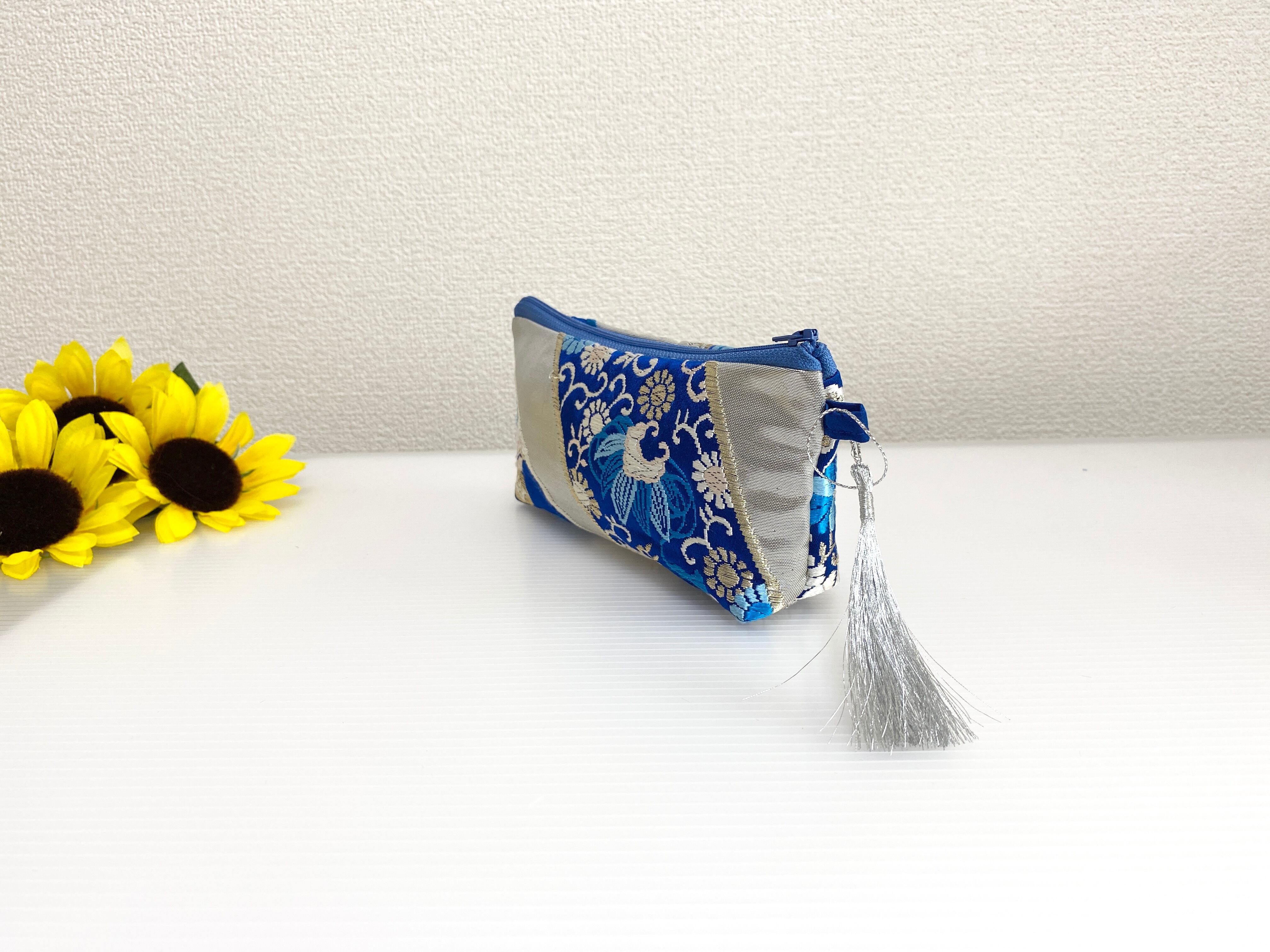 裏生地にも帯を使用しておりますのでしっかりとした造りの帯リメイクポーチです。