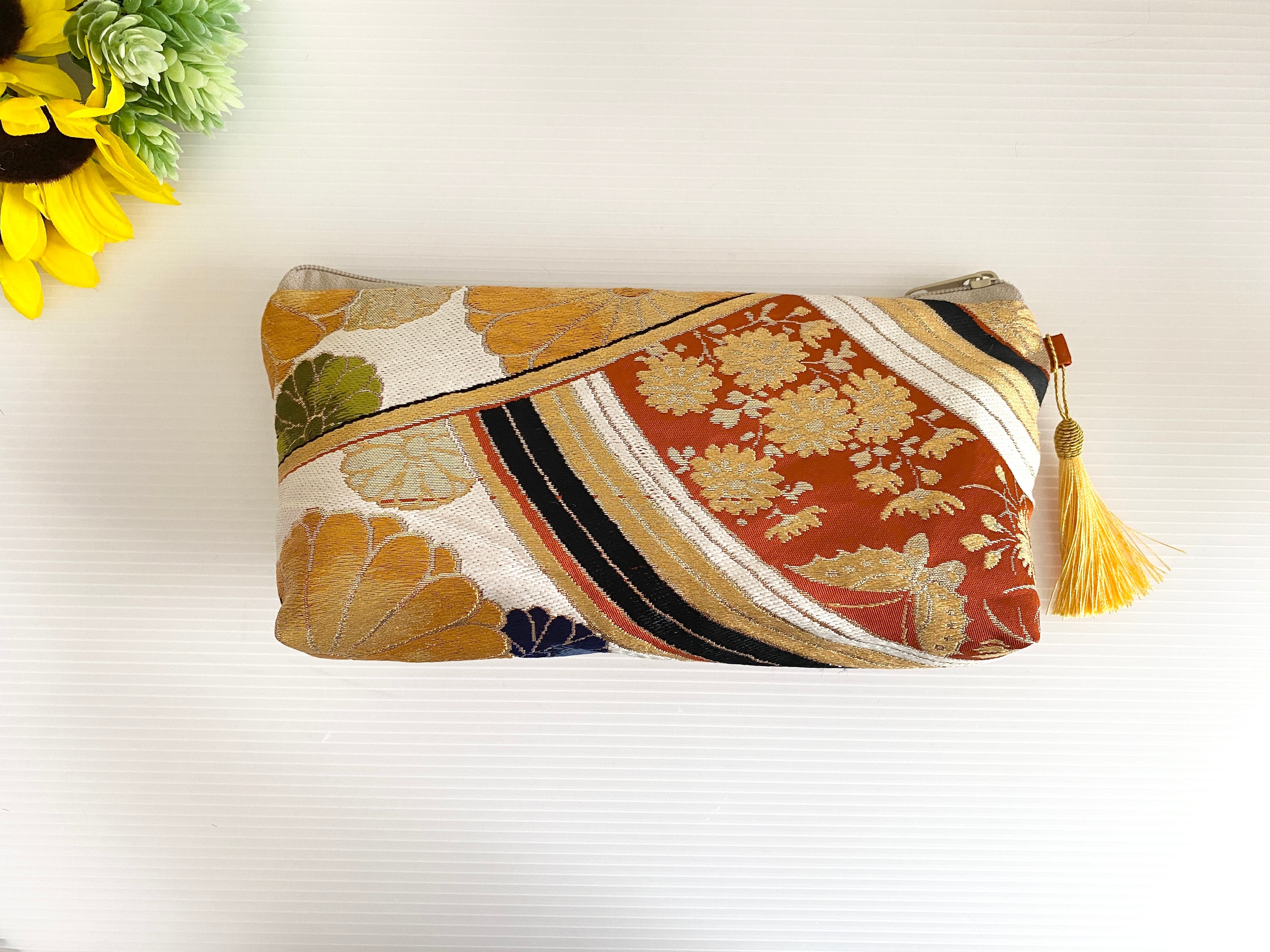 帯リメイクポーチ【大きめ】西陣織り帯リメイク化粧ポーチ1点物ハンドメイド送料無料メイクポーチ帯リメイクポーチ可愛いポーチ【大きめ】帯ポーチ帯リメイクポーチNO.1395
