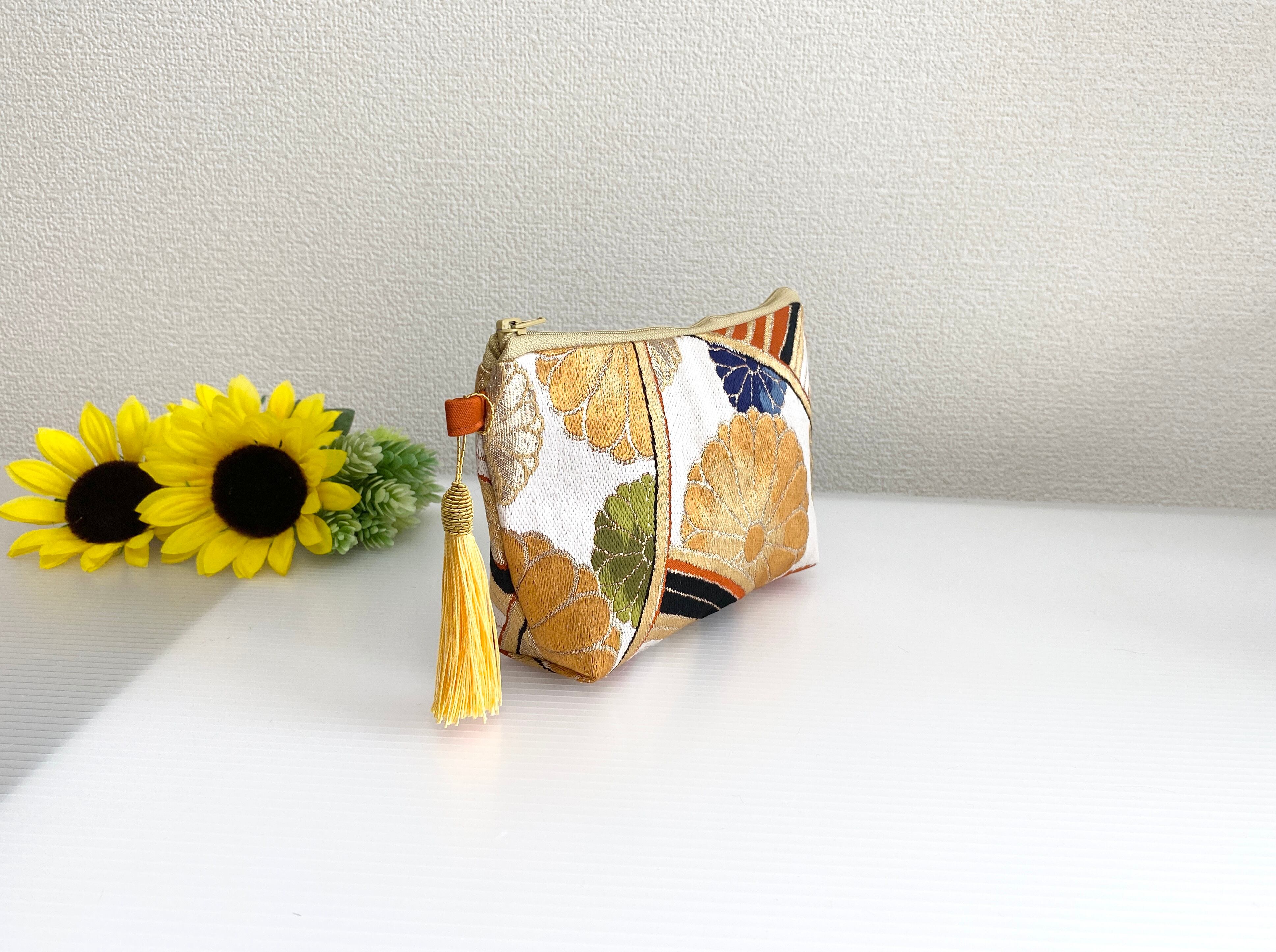 帯リメイクポーチ化粧ポーチ西陣織りハンドメイド送料無料メイクポーチ西陣織り帯リメイクポーチ可愛いポーチ帯ポーチ帯リメイクポーチNO.1397