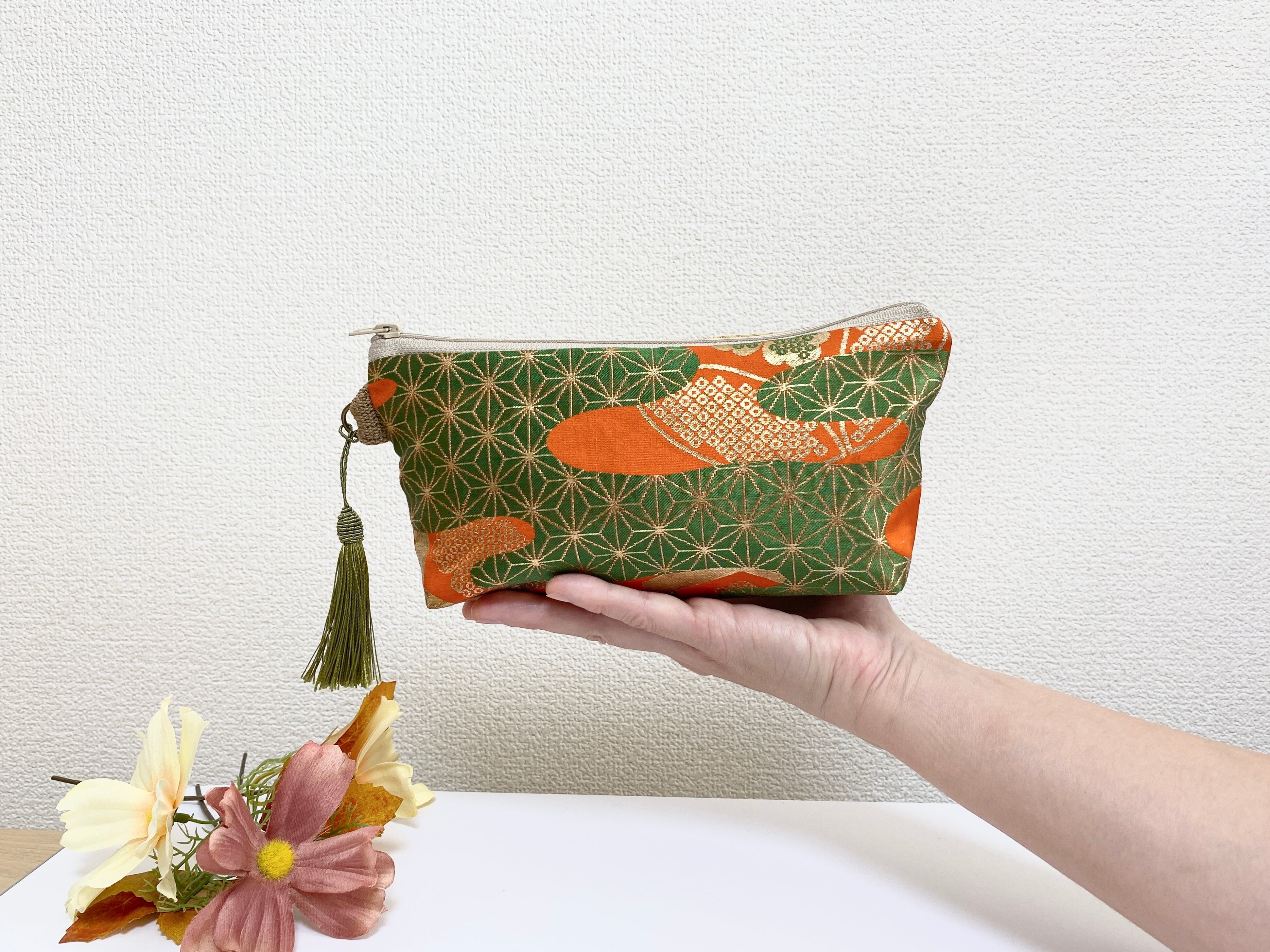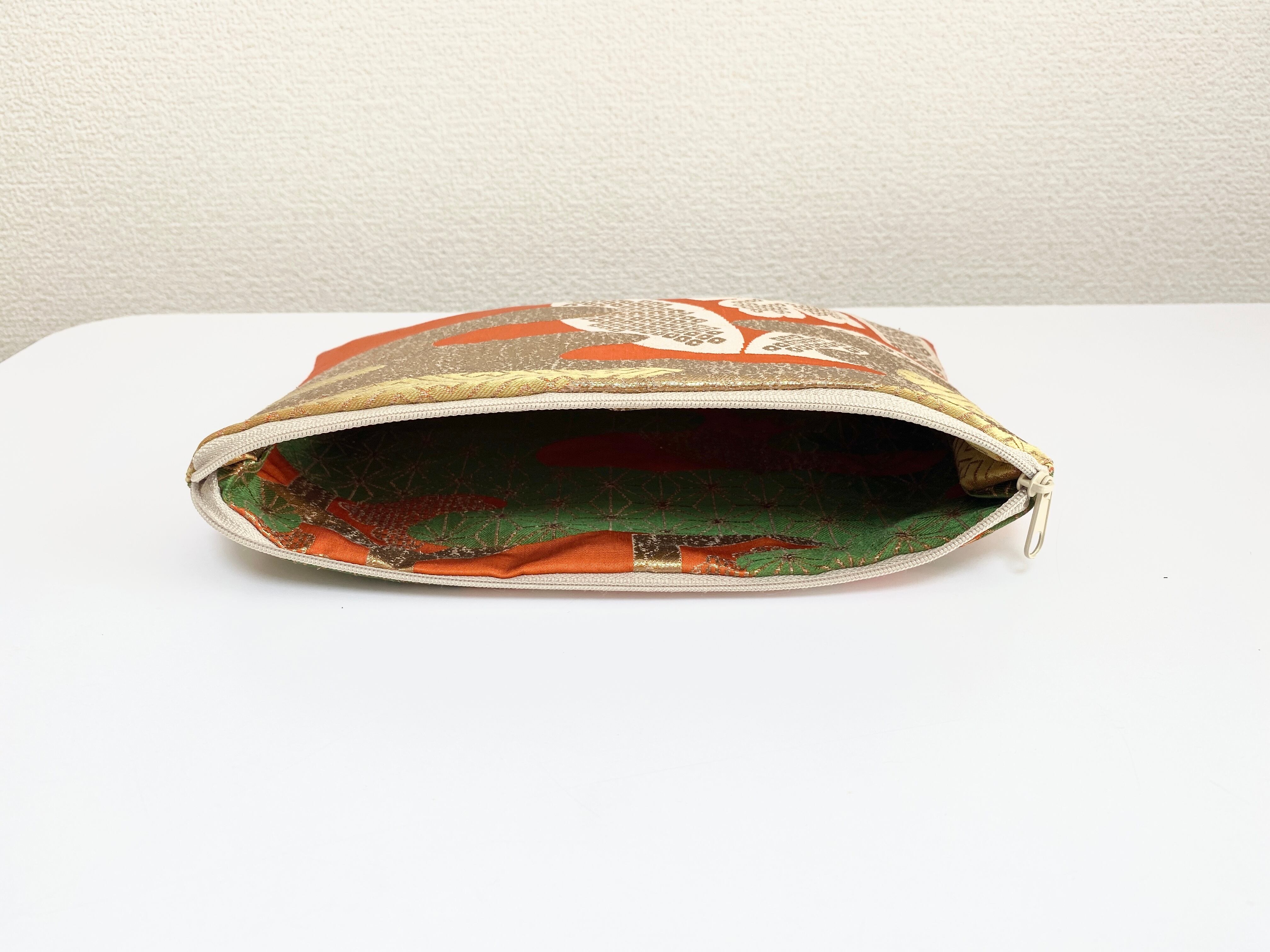 日本の古帯を再利用リメイクして作製したポーチでハンドメイド品です。