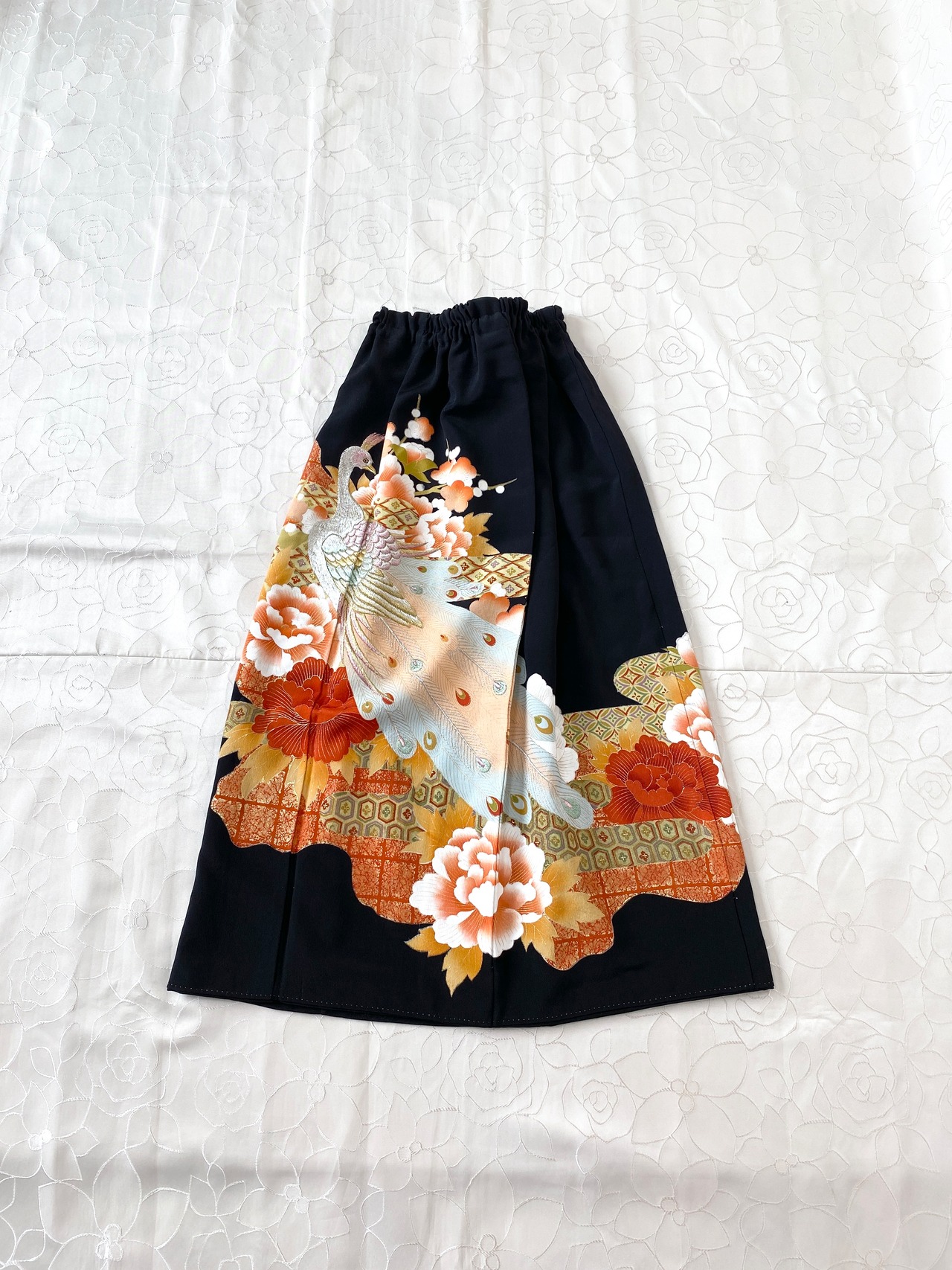 黒留袖着物をリメイクして作製したウエストゴムロングドレススカートフリーサイズです。