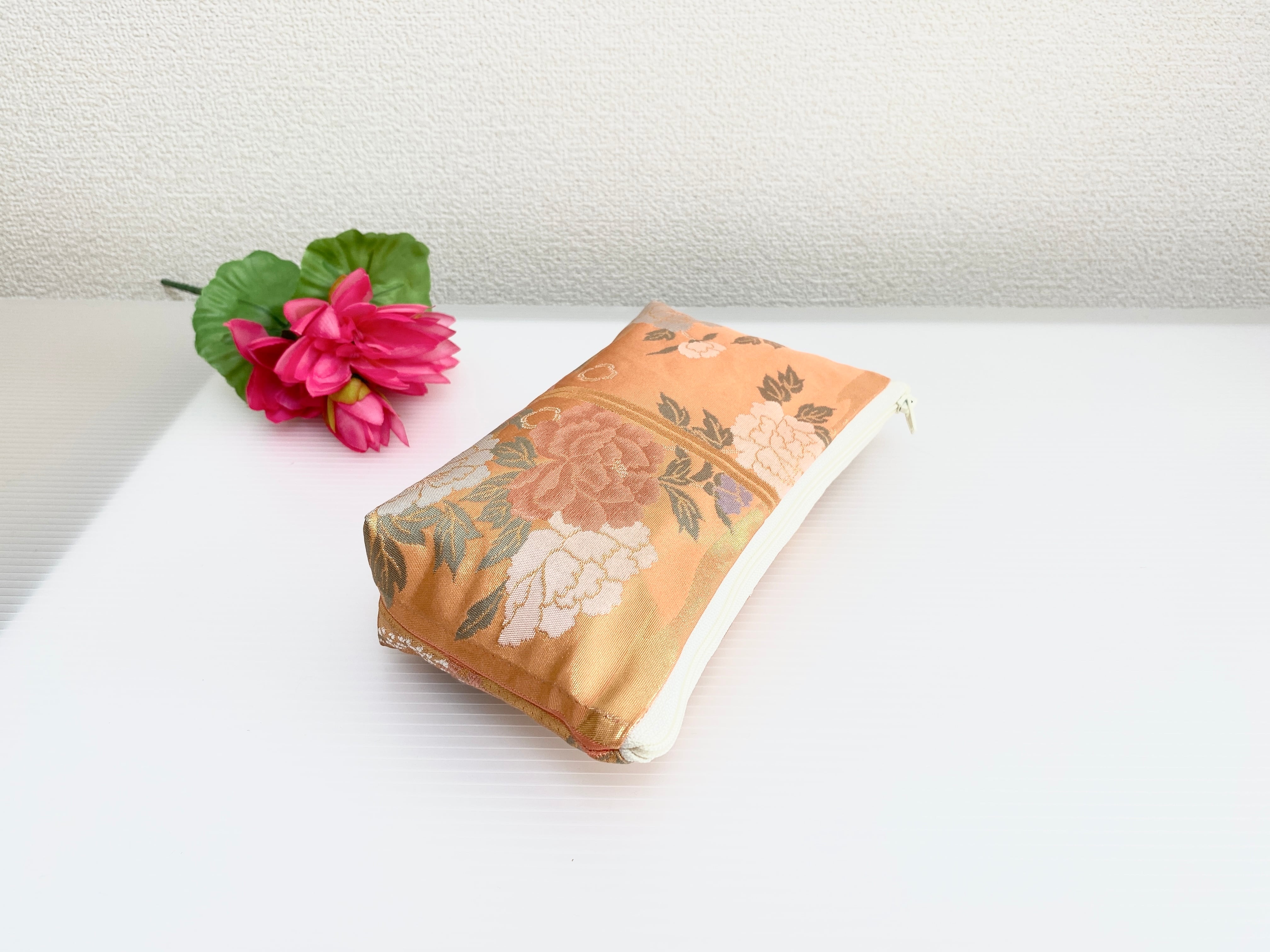 本金箔の帯をリメイクして作製したポーチです。