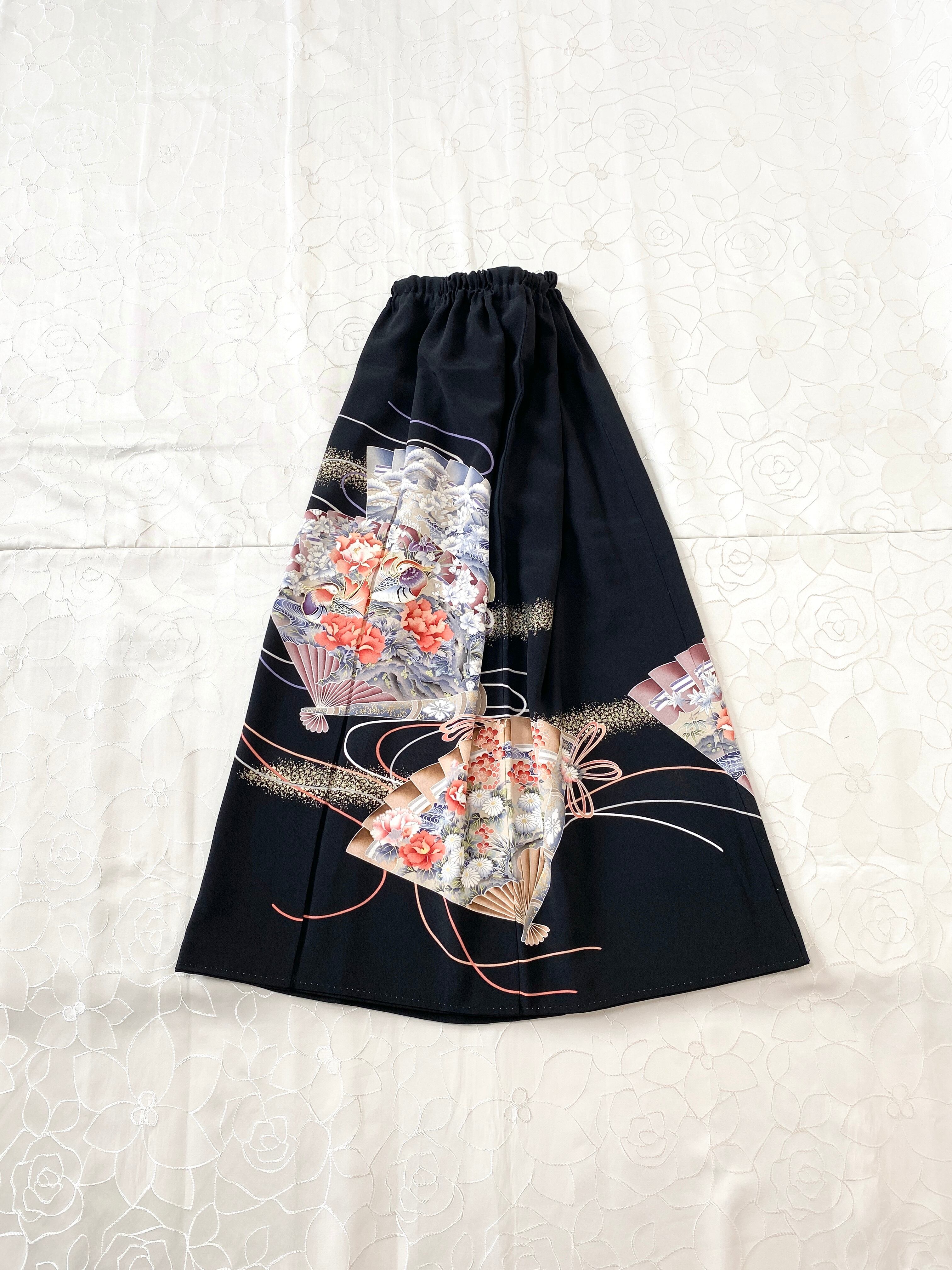 黒留袖着物リメイクウエストゴムロングスカートフリーサイズ