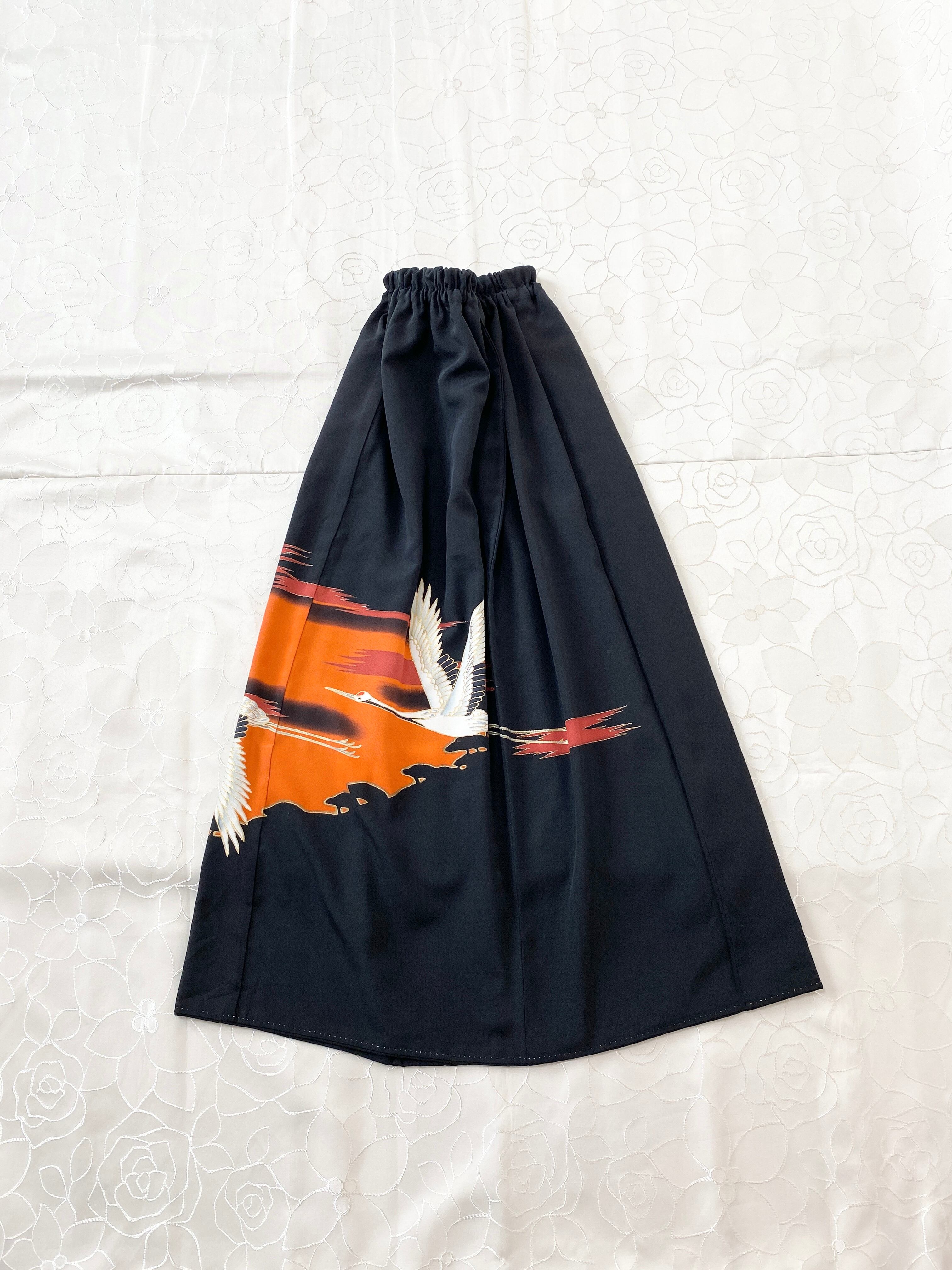 黒留袖着物リメイクウエストゴムロングドレススカートフリーサイズ【超ロング丈】