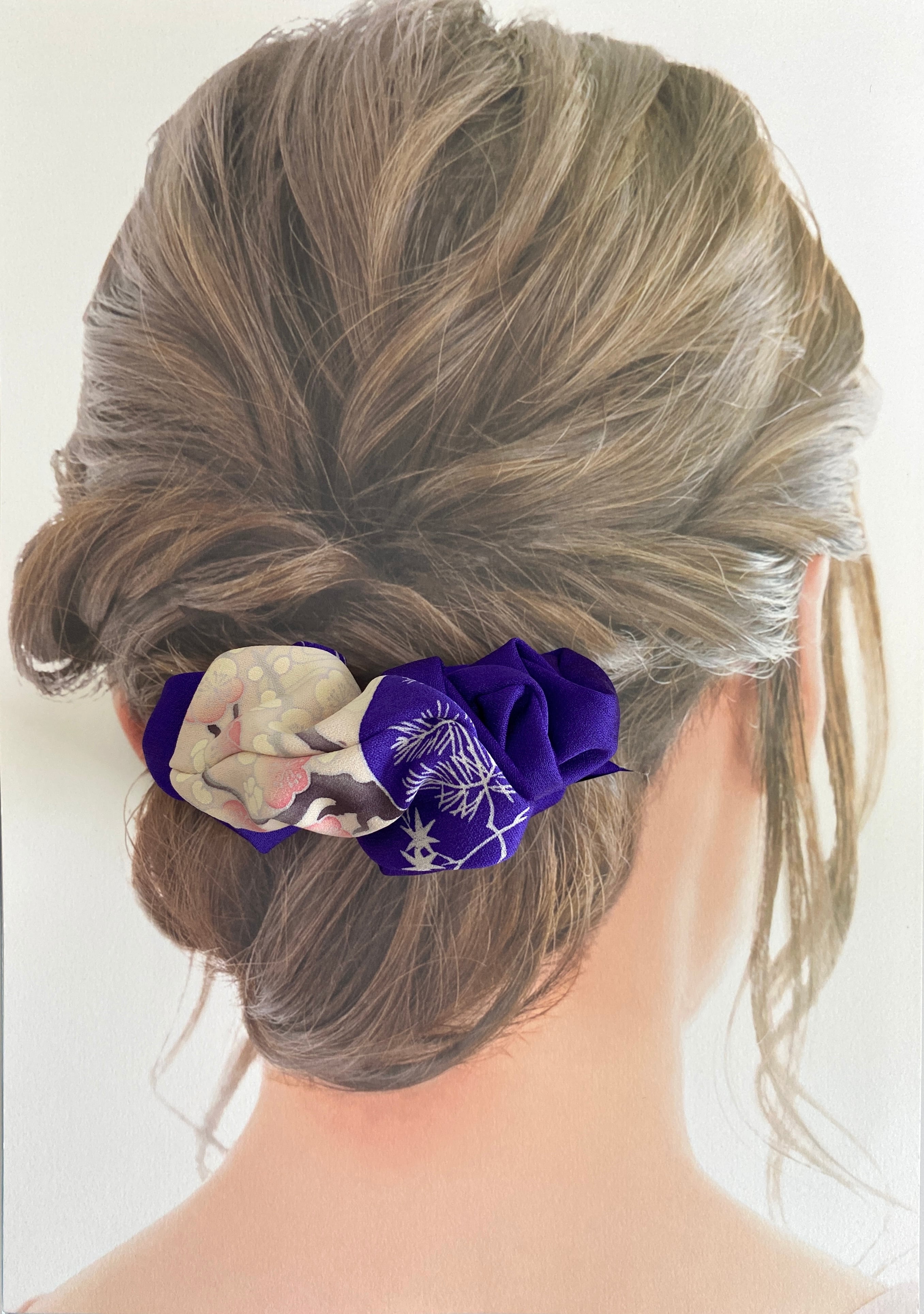 着物布生地なので柔らかで薄い布生地な為触り心地が良く滑らかで髪結びの装着がとても良いシュシュです。