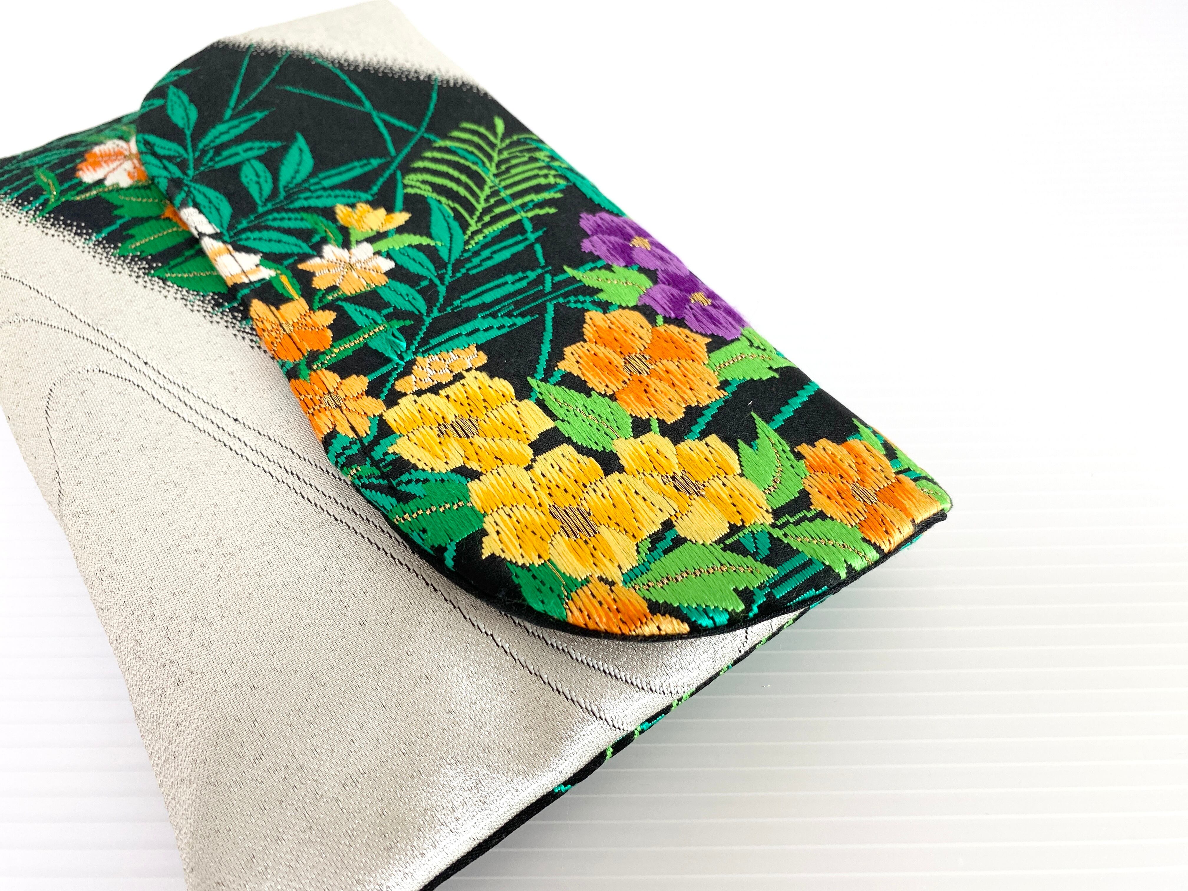 触り心地が滑らかで手にしっくりとくる安心感。絵柄の鮮やかさは日本の帯ならではの存在感で素晴らしく華やかな美しさです。