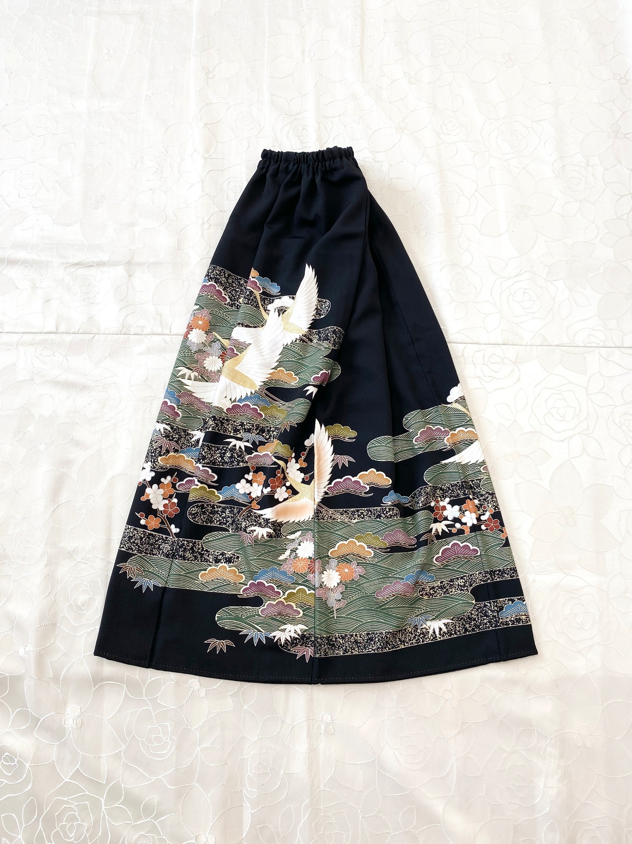 黒留袖着物リメイクウエストゴムロングスカートフリーサイズ【超ロング丈】
