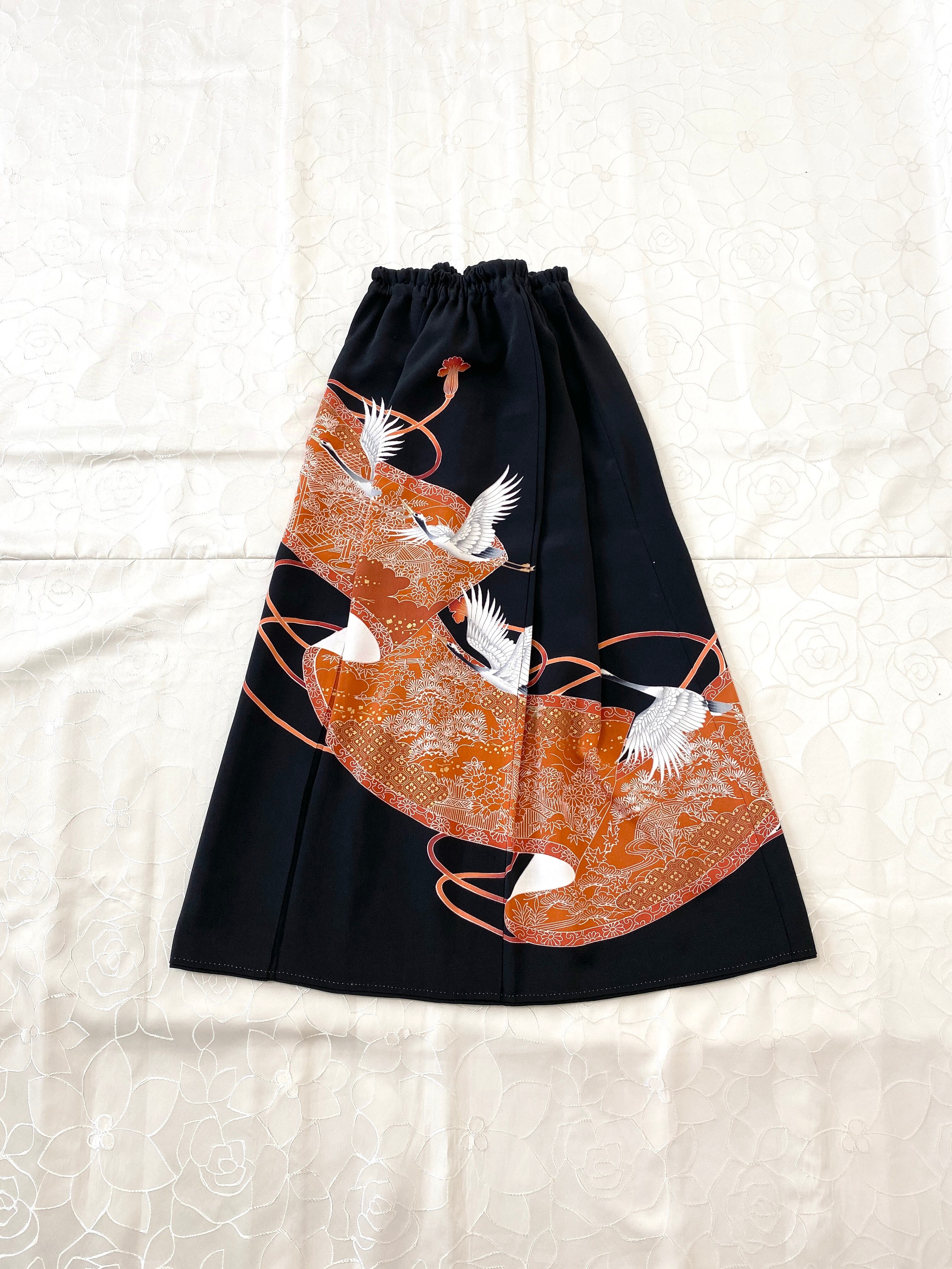 黒留袖着物リメイクウエストゴムロングスカートフリーサイズ