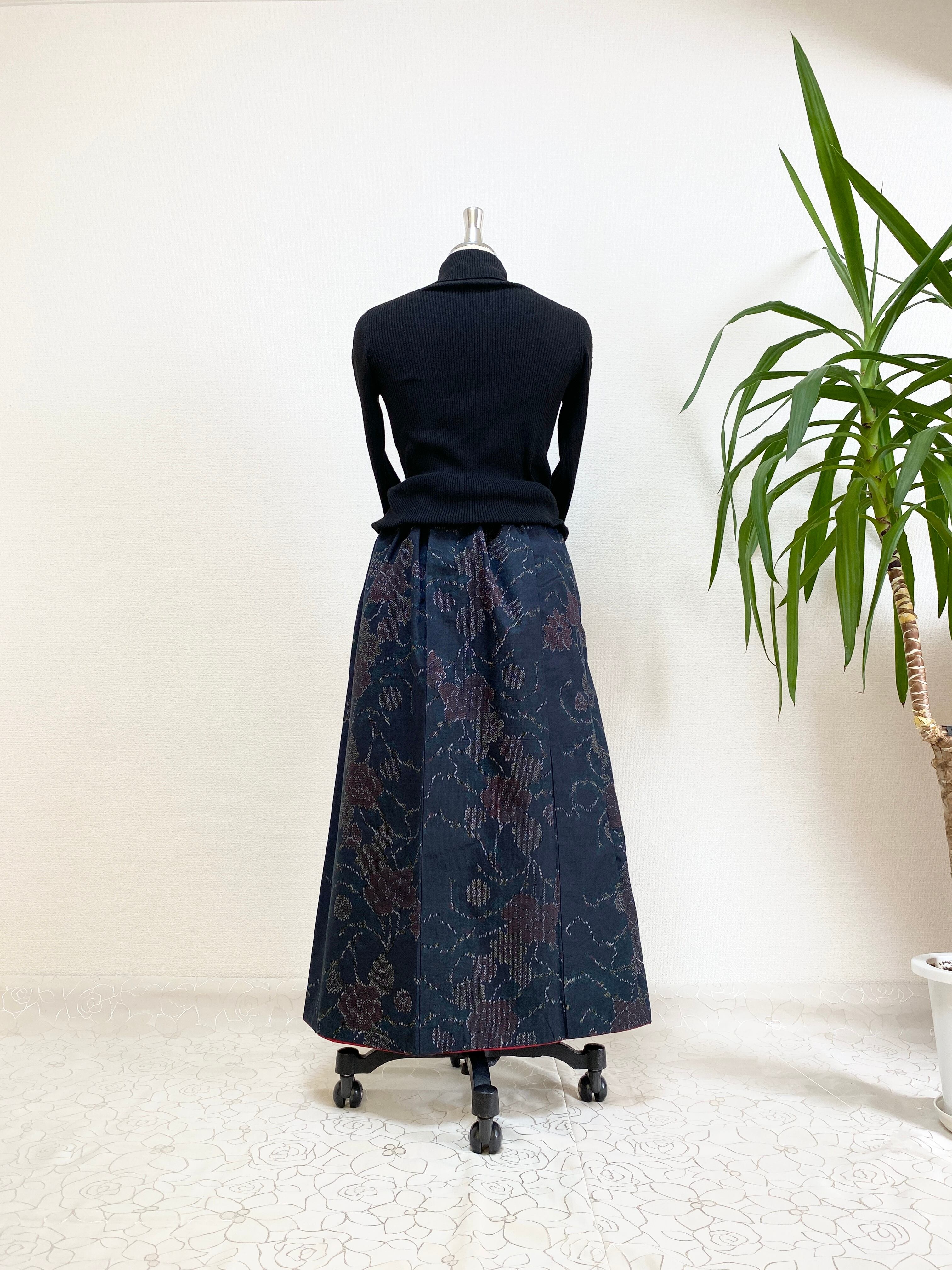 大島紬着物リメイクウエストゴムロングスカートフリーサイズ