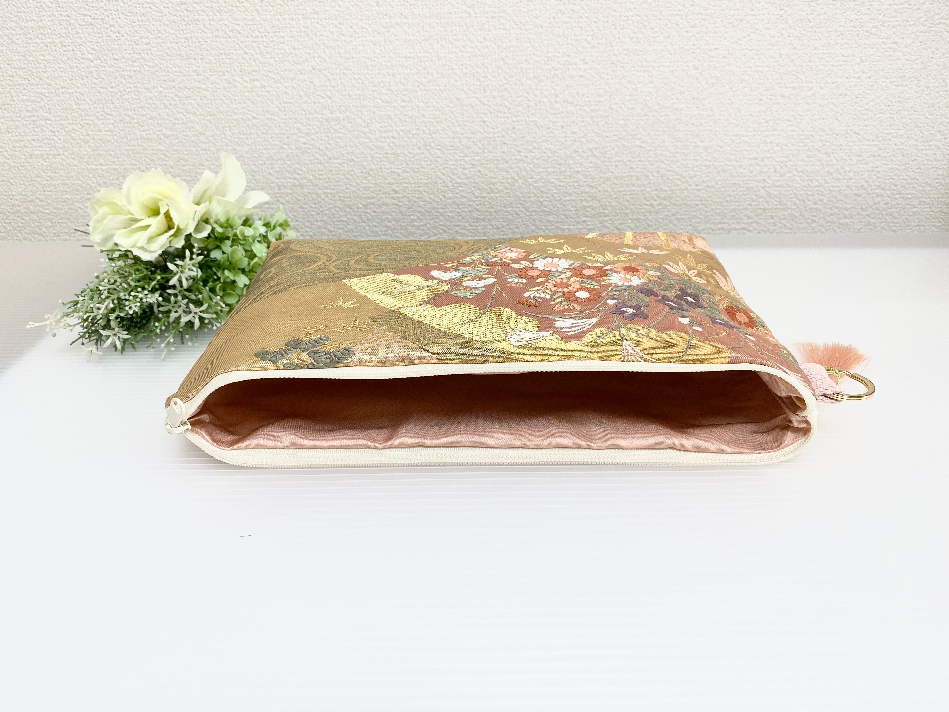 帯リメイクポーチ【大きめ】化粧ポーチ1点物ハンドメイド送料無料メイクポーチ帯リメイクポーチ可愛いポーチ【大きめ】帯リメイクポーチNO.1057