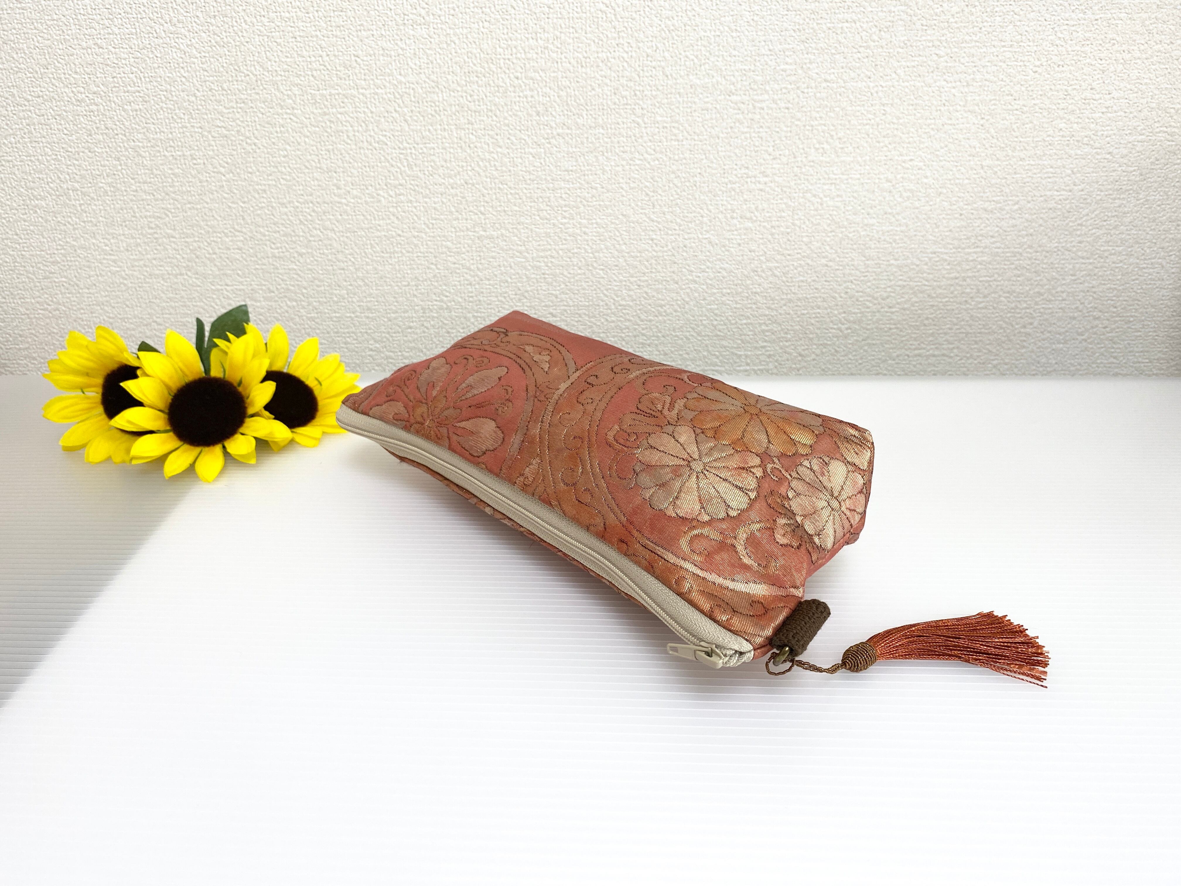 帯リメイクポーチ【大きめ】化粧ポーチ1点物ハンドメイド送料無料帯リメイクポーチ可愛いポーチ【大きめ】帯メイク化粧ポーチ帯リメイクポーチNO.540