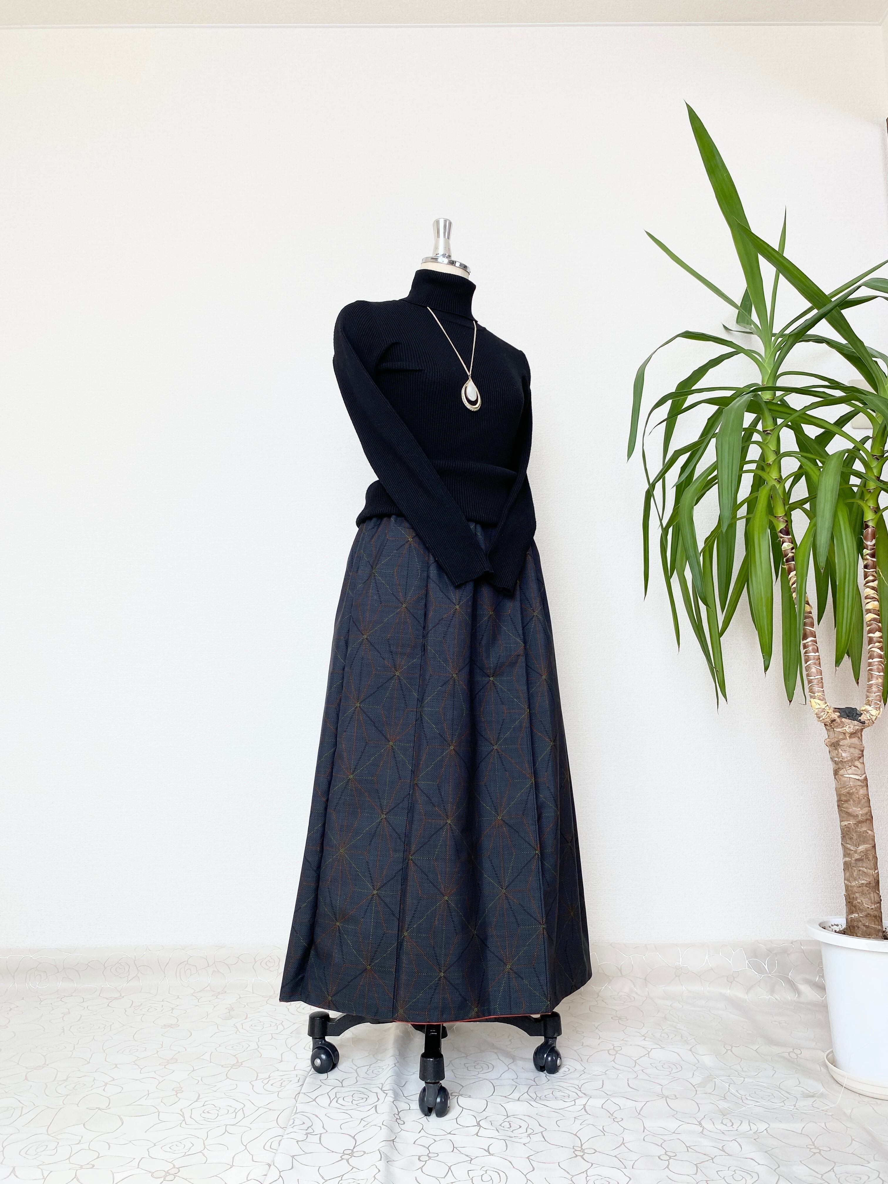 大島の着物をリメイクして作製したウエストゴムロングドレススカートフリーサイズです。