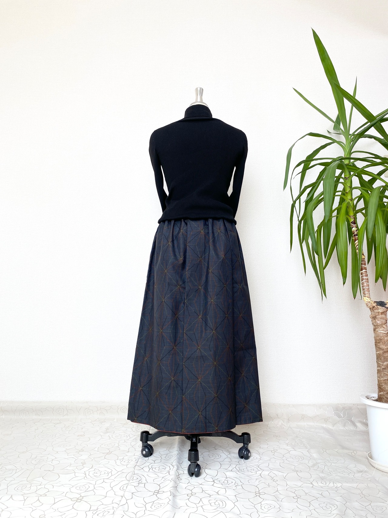 大島着物リメイクウエストゴムロングスカートフリーサイズ