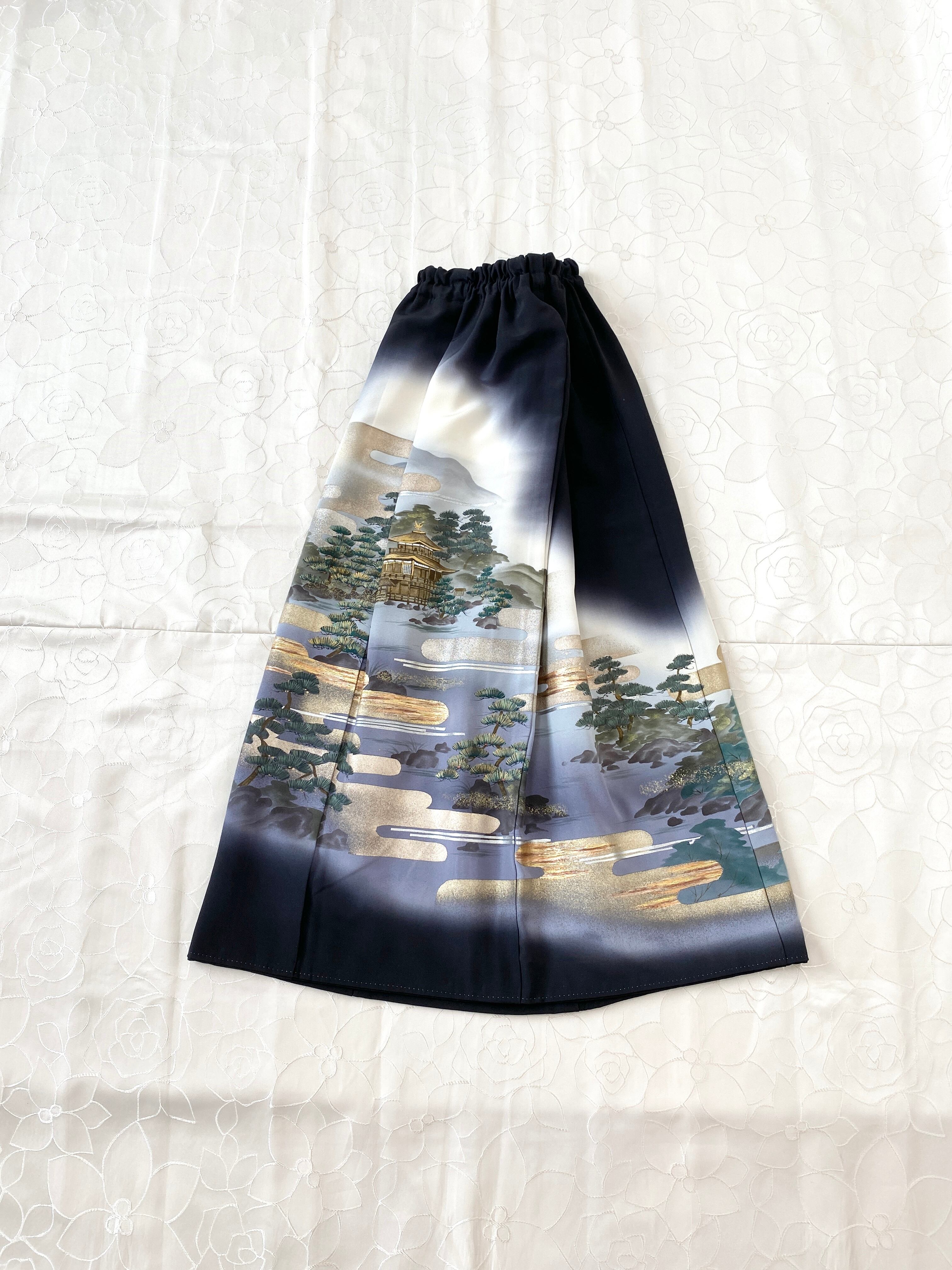 黒留袖着物リメイクウエストゴムロングスカートフリーサイズ
