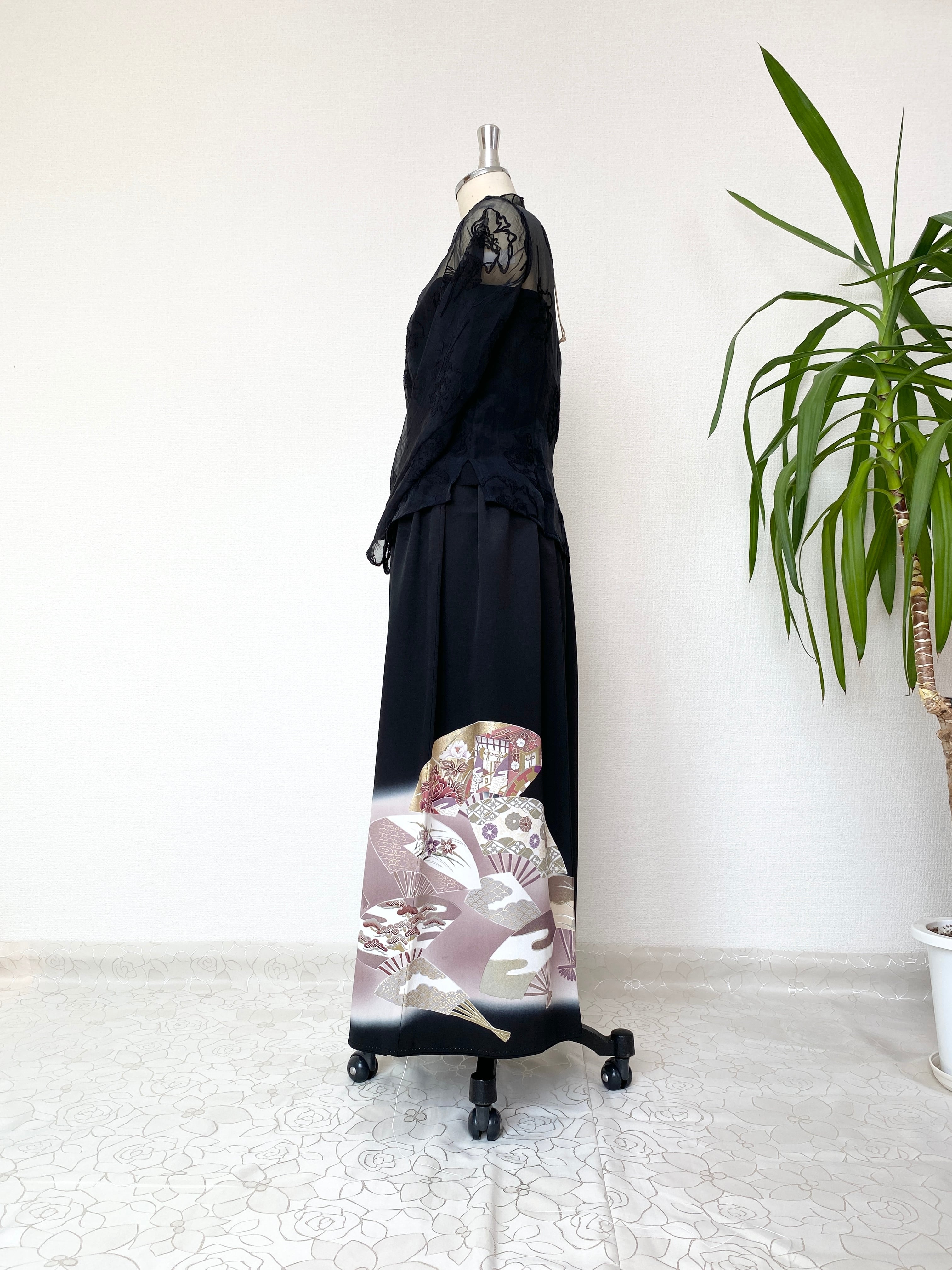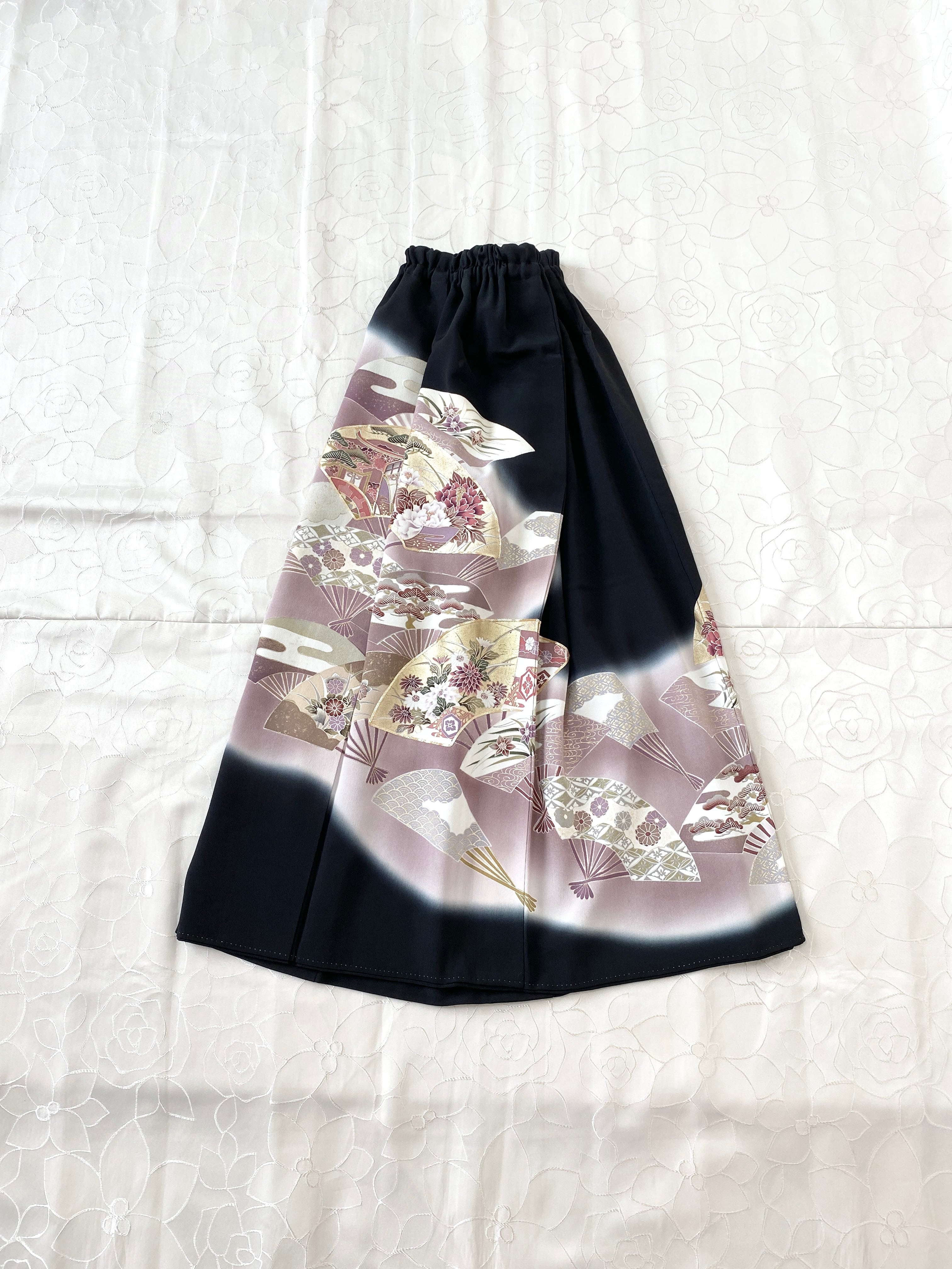 黒留袖着物リメイクウエストゴムロングスカートフリーサイズ