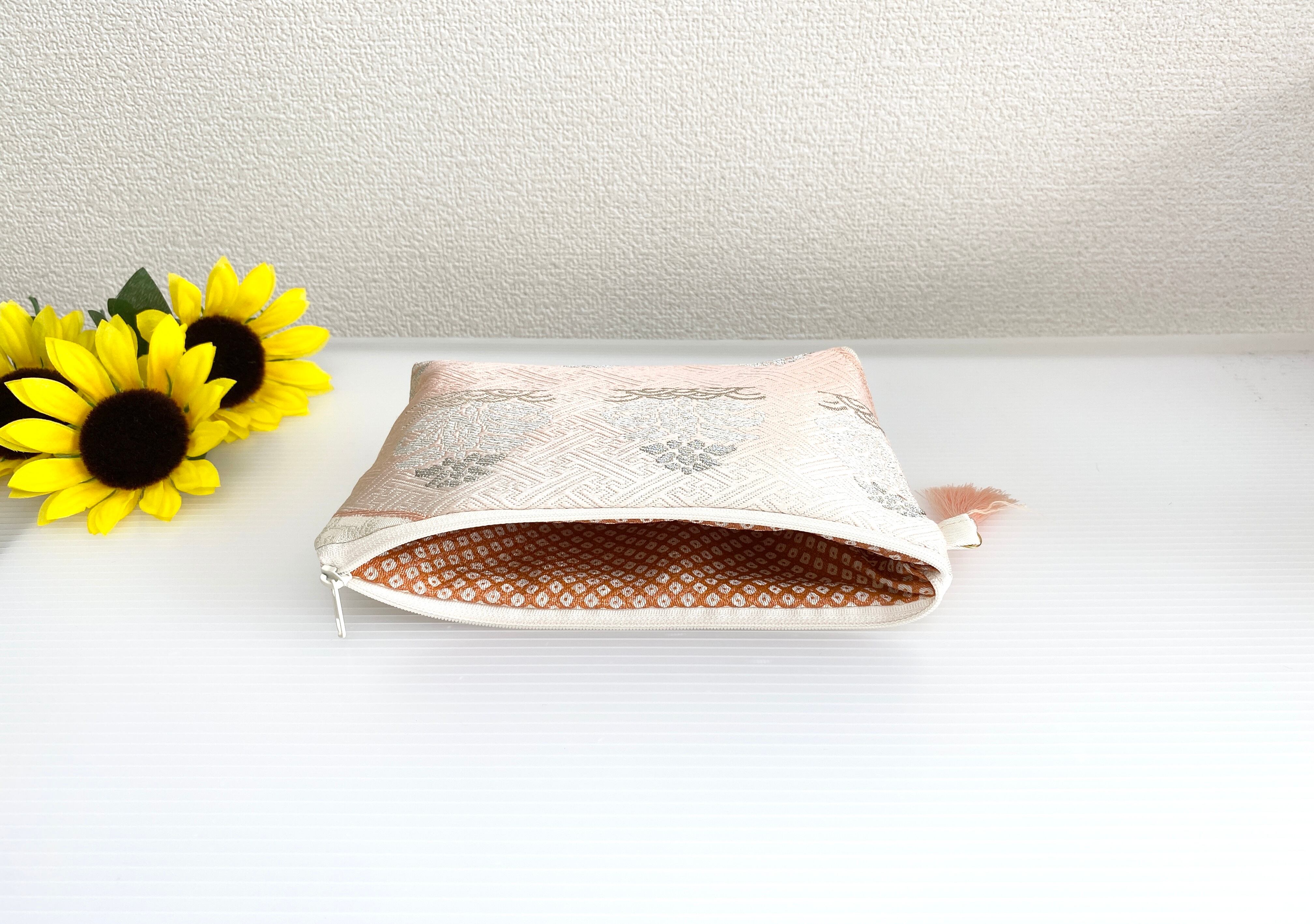日本の古帯をリメイクして作製したポーチでハンドメイド品です。