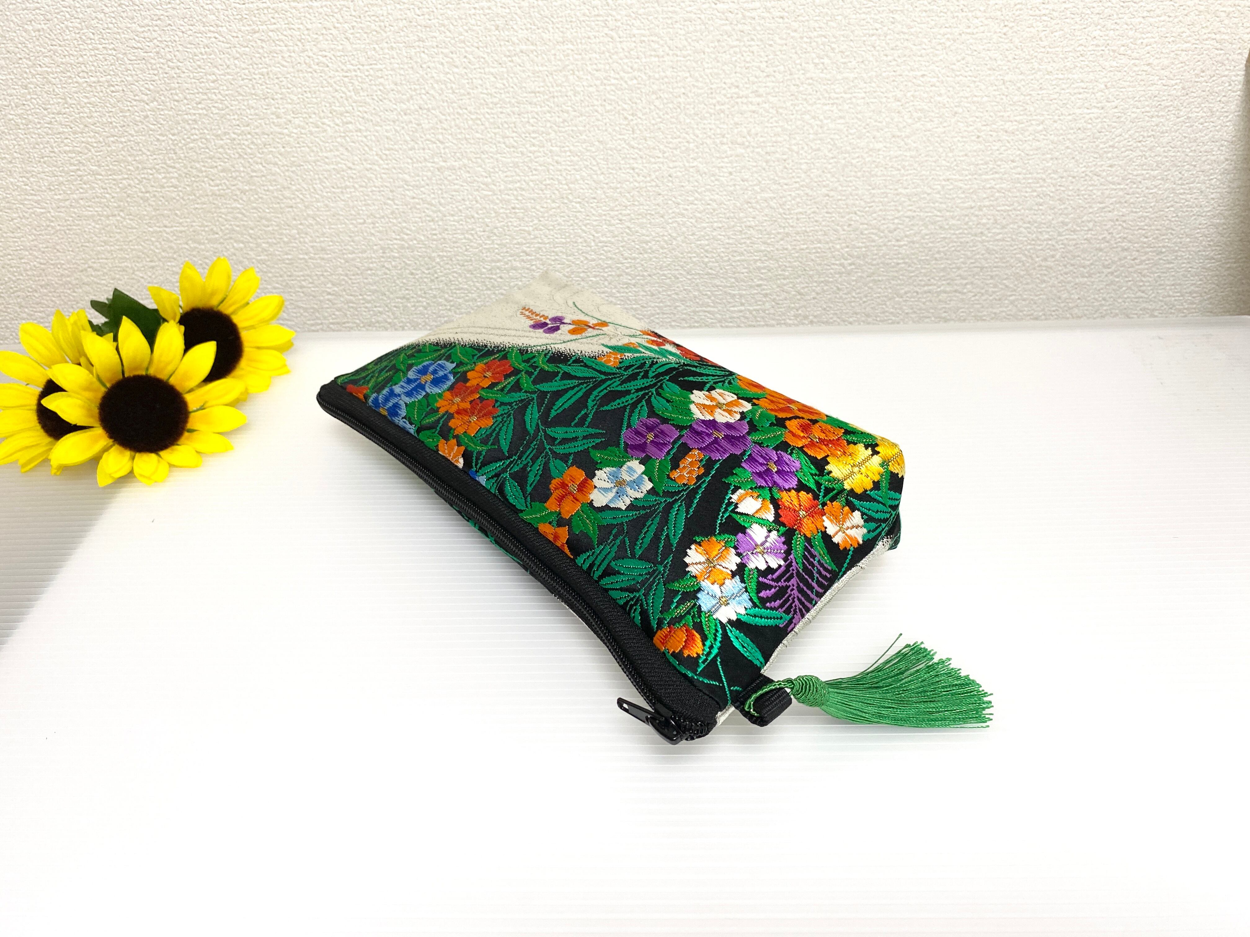 帯リメイクポーチ【大きめ】化粧ポーチ1点物ハンドメイド送料無料帯リメイクポーチ可愛いポーチ【大きめ】帯ポーチ帯リメイクポーチNO.1515