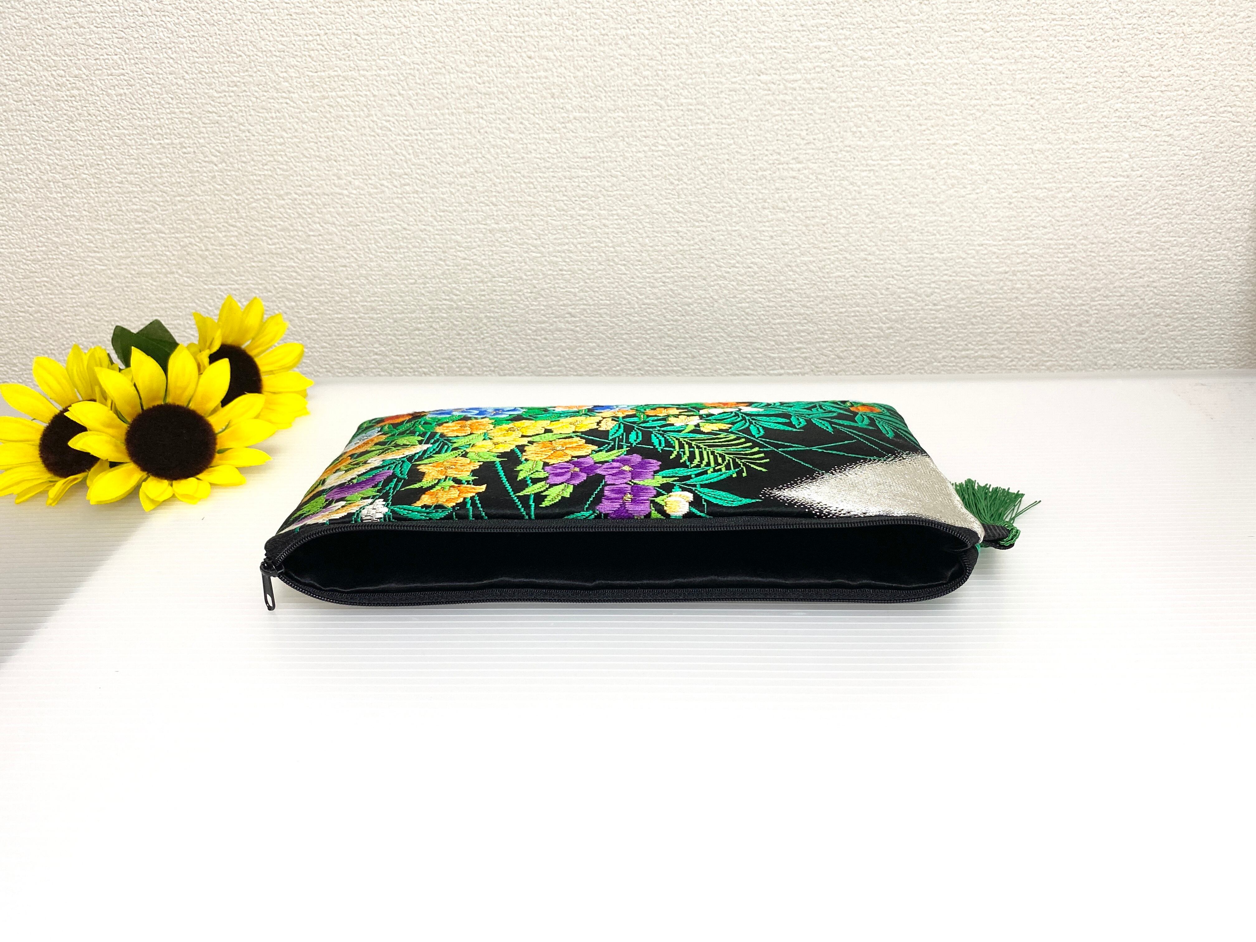 帯リメイクポーチ化粧ポーチ【大きめマチ無し】1点物ハンドメイド送料無料帯リメイクポーチ【大きめマチ無し】メイクポーチハンドメイド送料無料帯リメイクポーチNO.1518