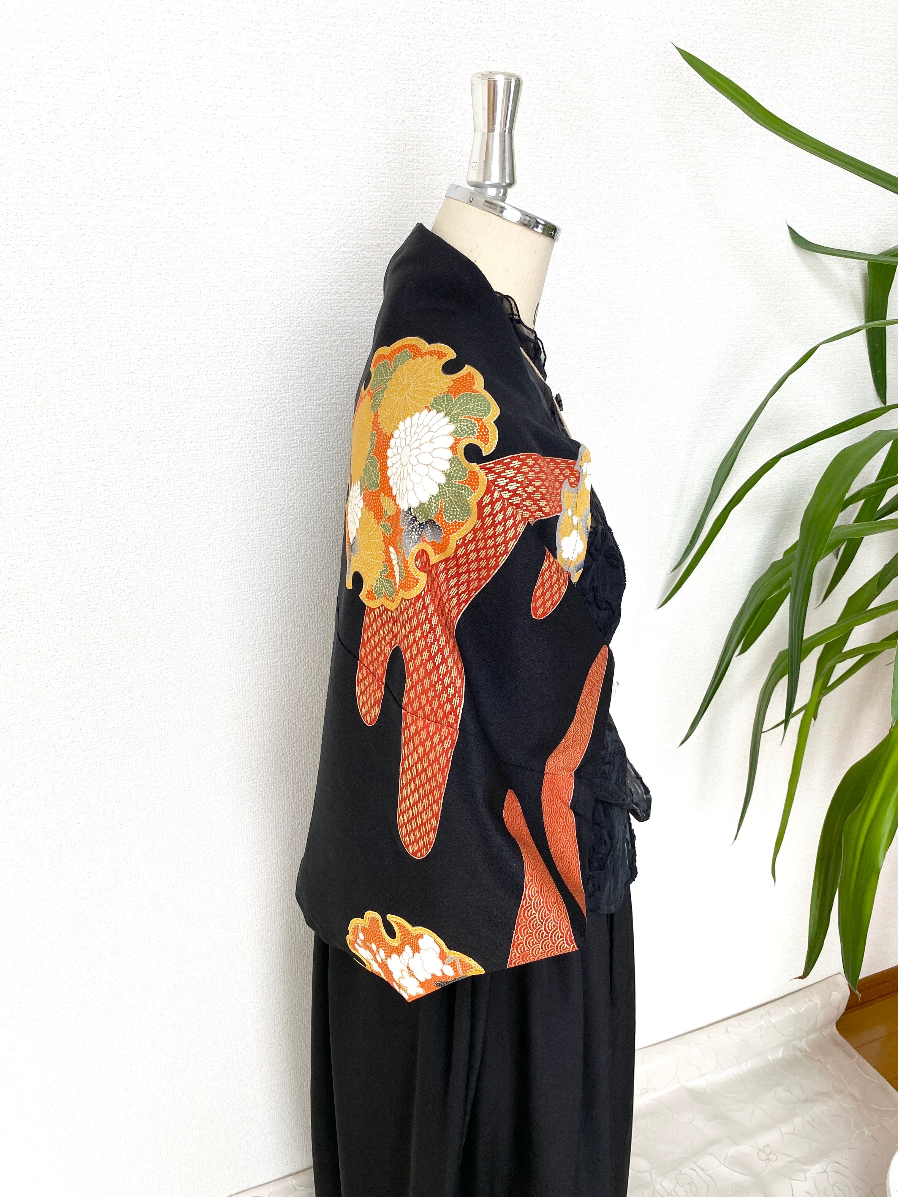 黒留袖着物リメイクストール ショール ショートカーディガン 羽織物