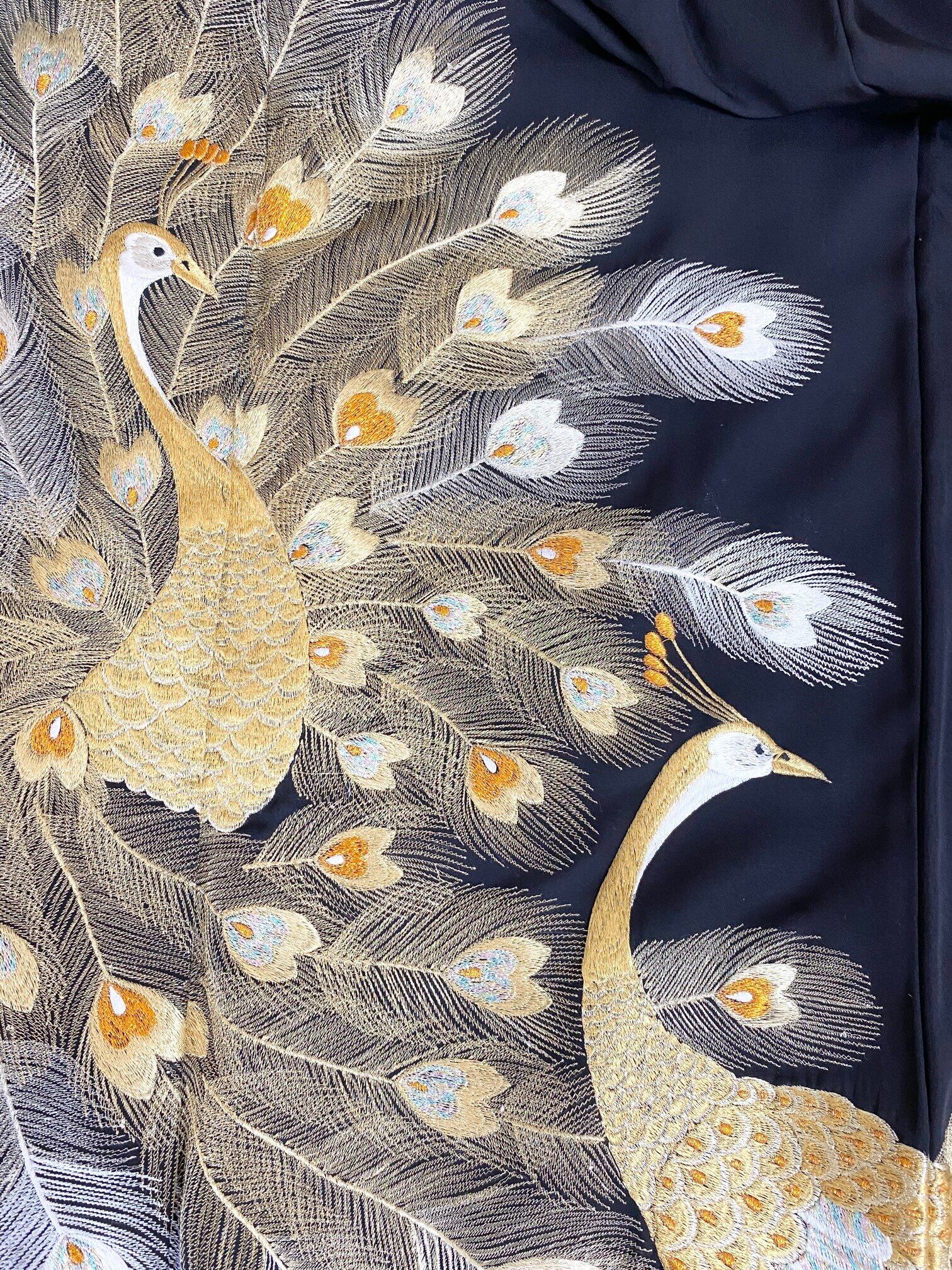 黒留袖着物リメイクウエストゴムロングスカートフリーサイズ