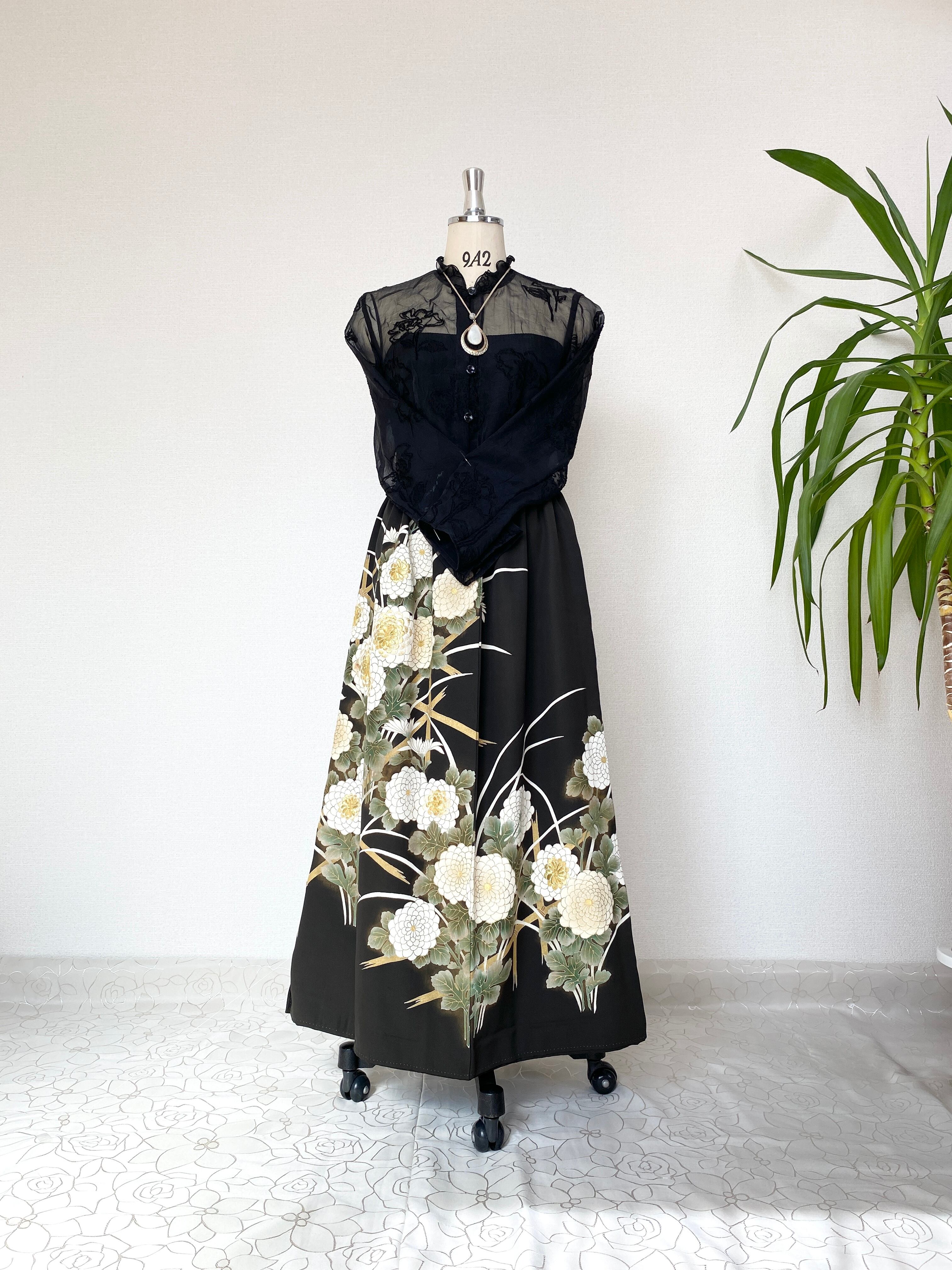 黒留袖着物リメイクウエストゴムロングスカートフリーサイズ