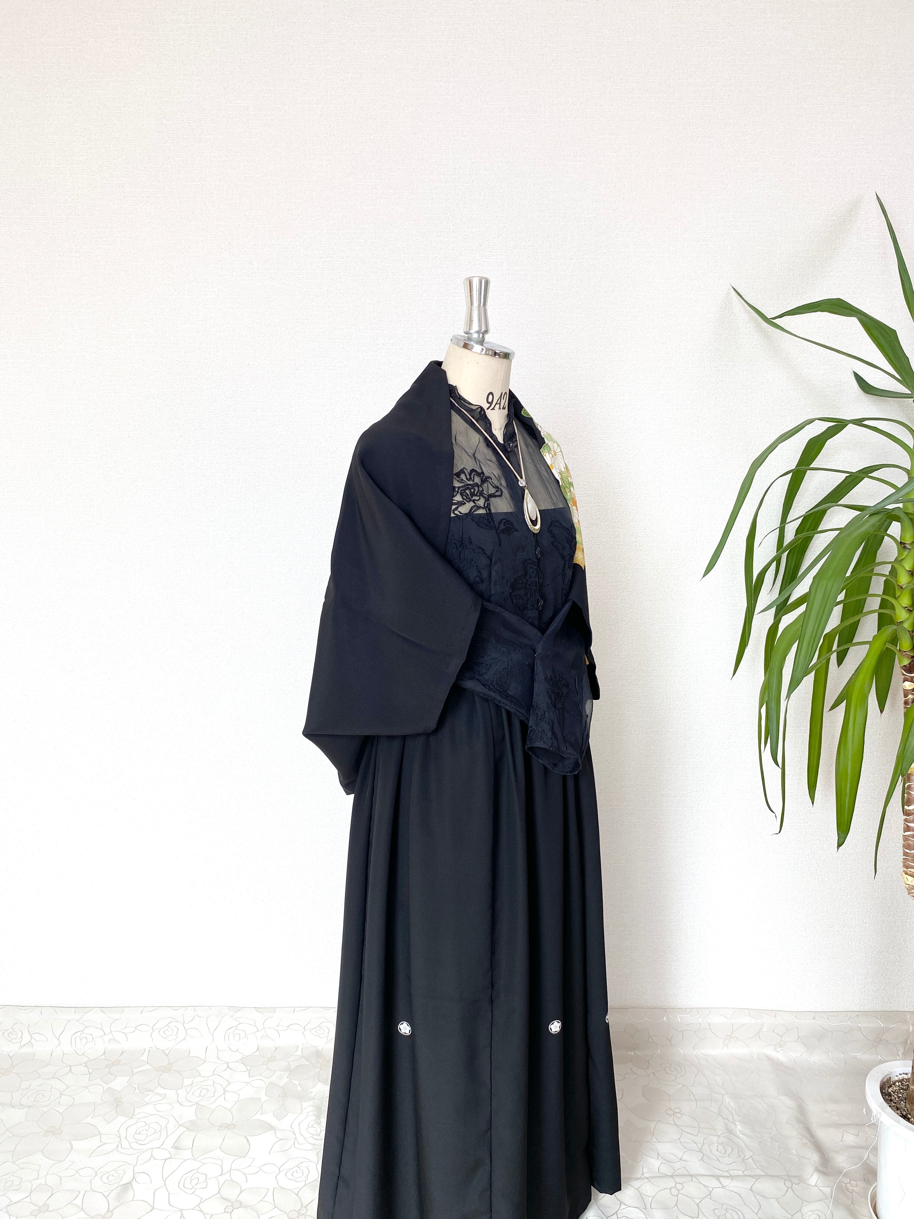 黒留袖着物リメイクストール ショール ショートカーディガン 羽織物 フリーサイズ
