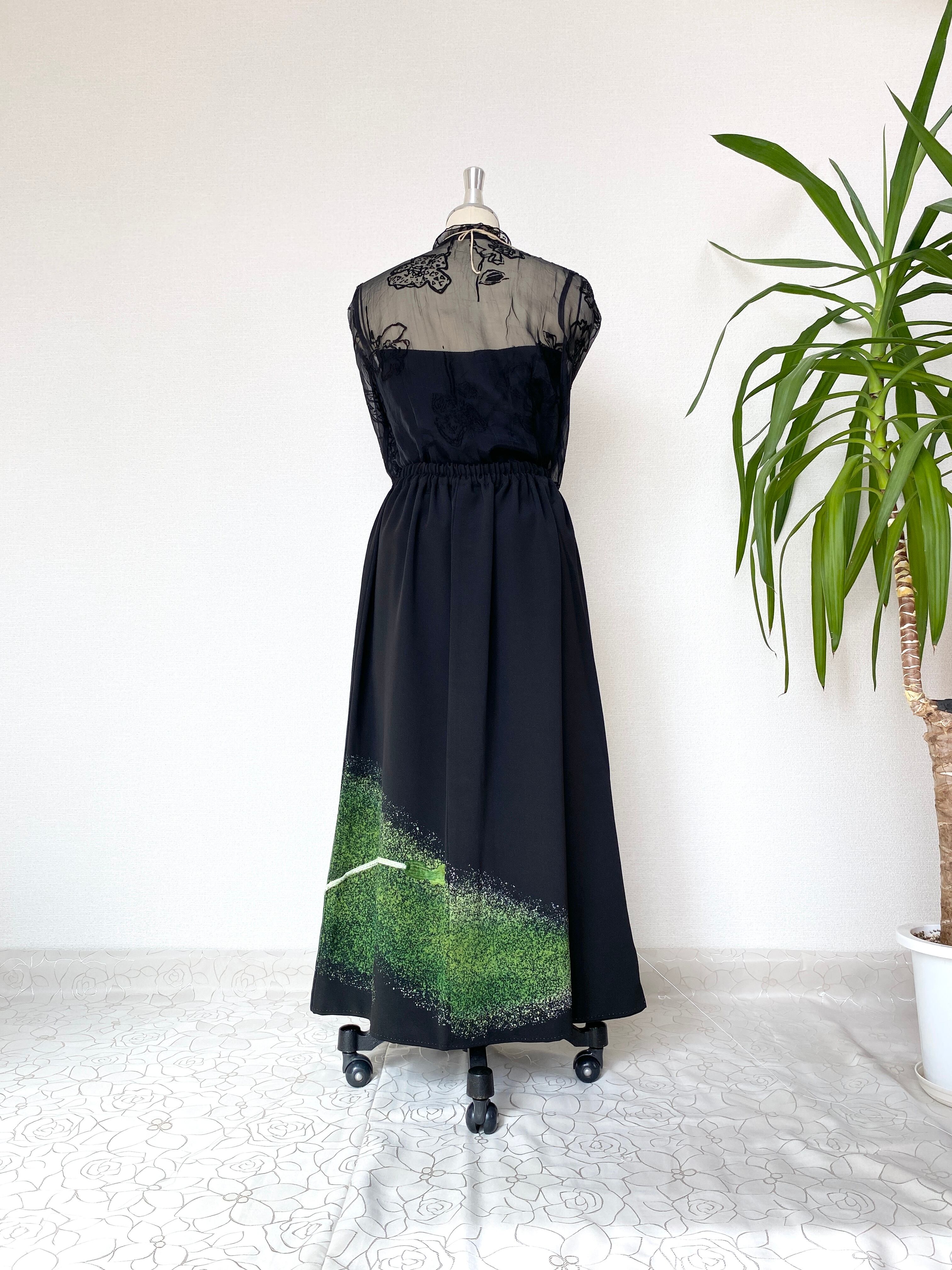 黒留袖着物をリメイクして作製したウエストゴムロングドレススカートフリーサイズです。
