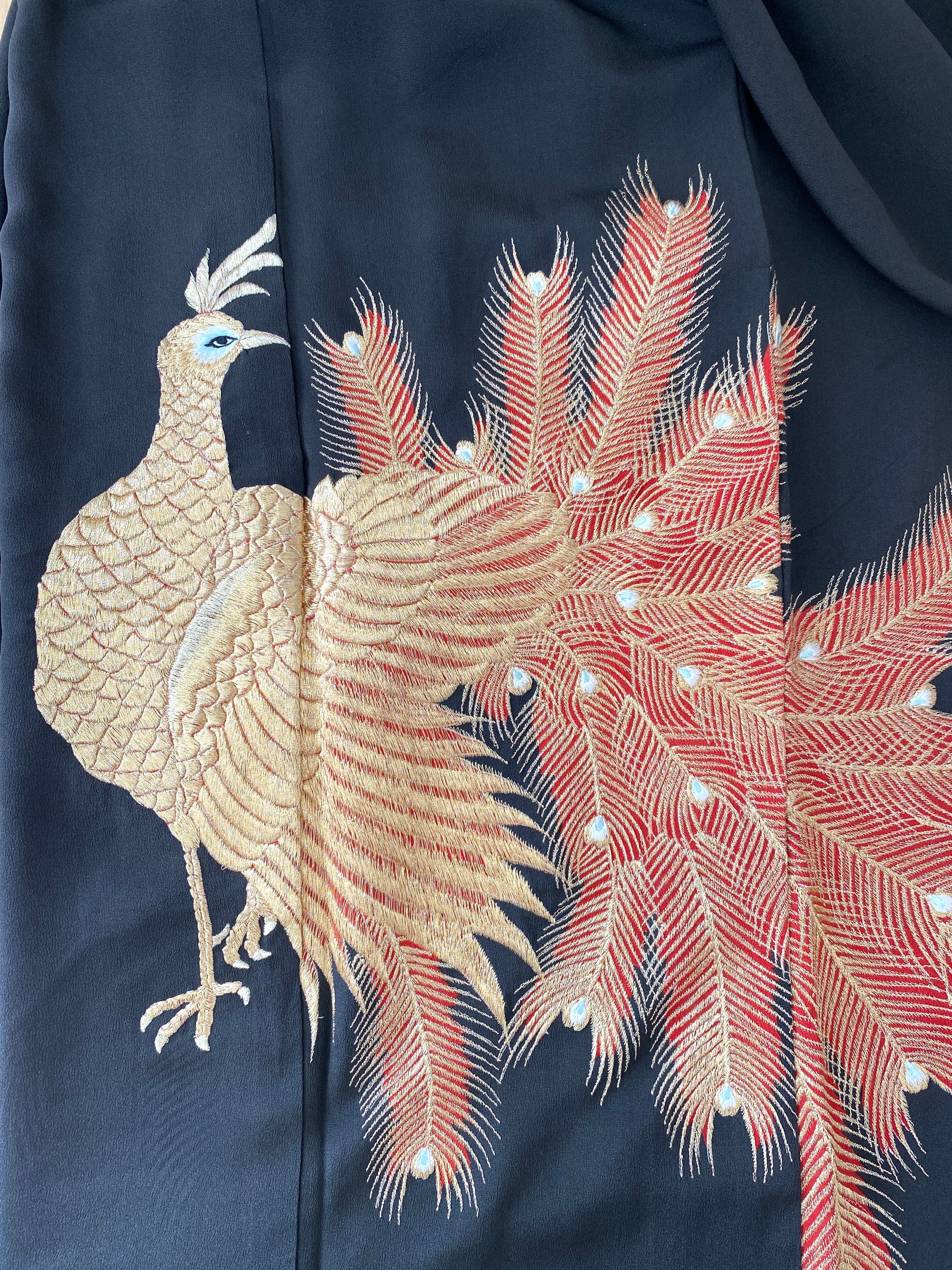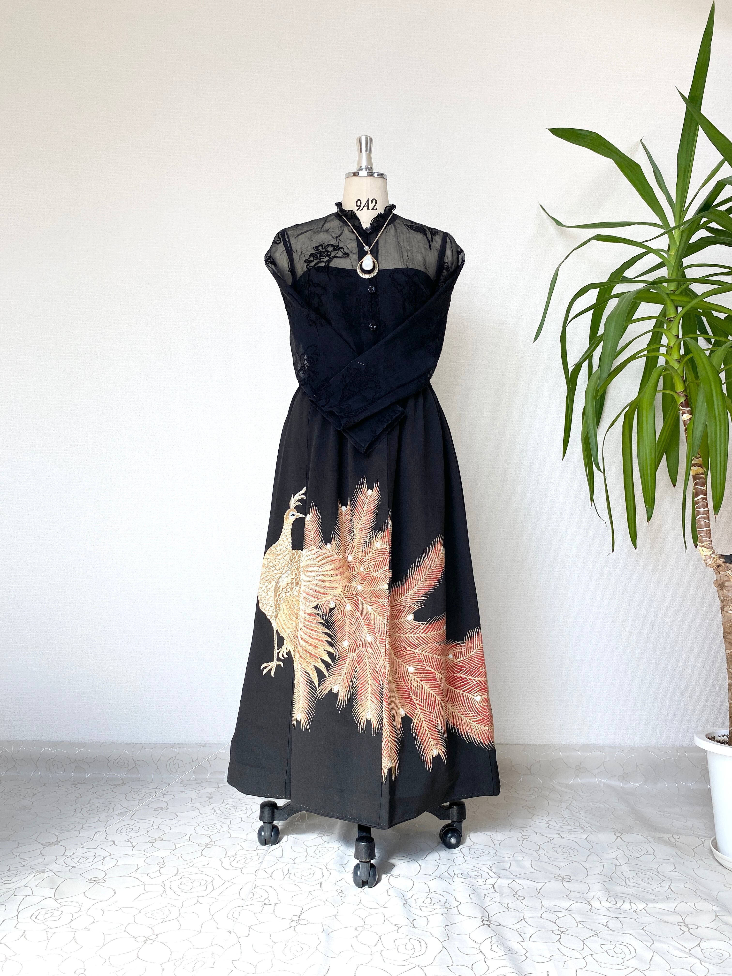 黒留袖着物リメイクウエストゴムロングスカートフリーサイズ