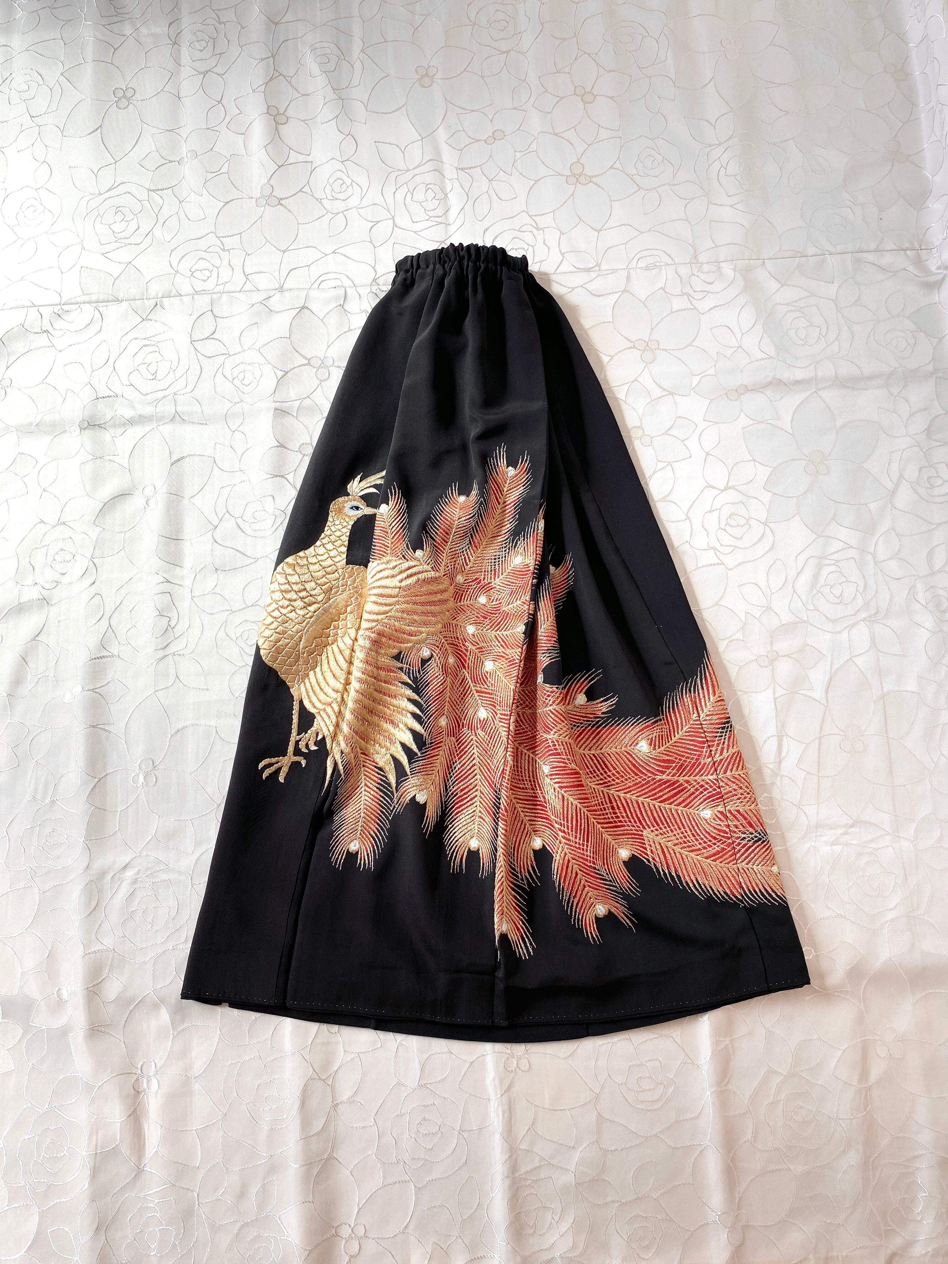 黒留袖着物をリメイクして作製したウエストゴムロングドレススカートフリーサイズです。