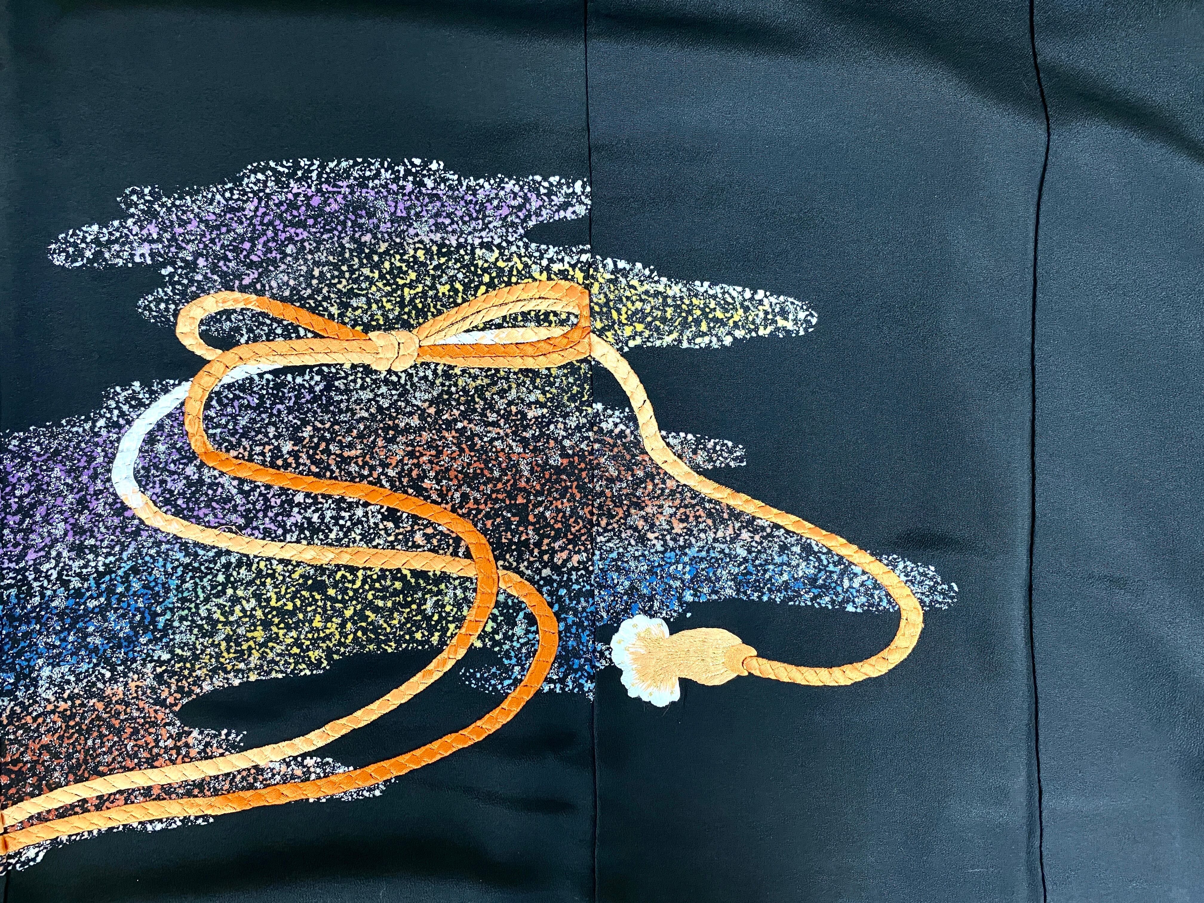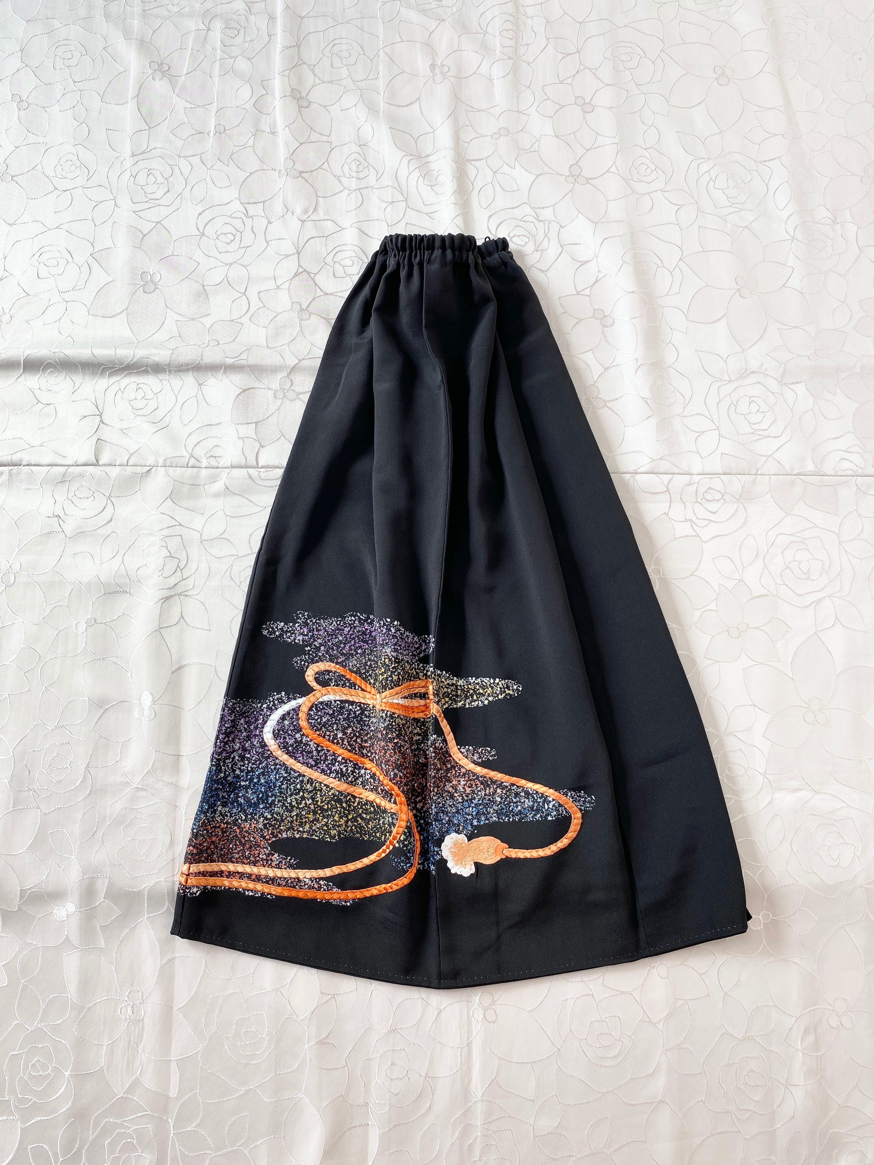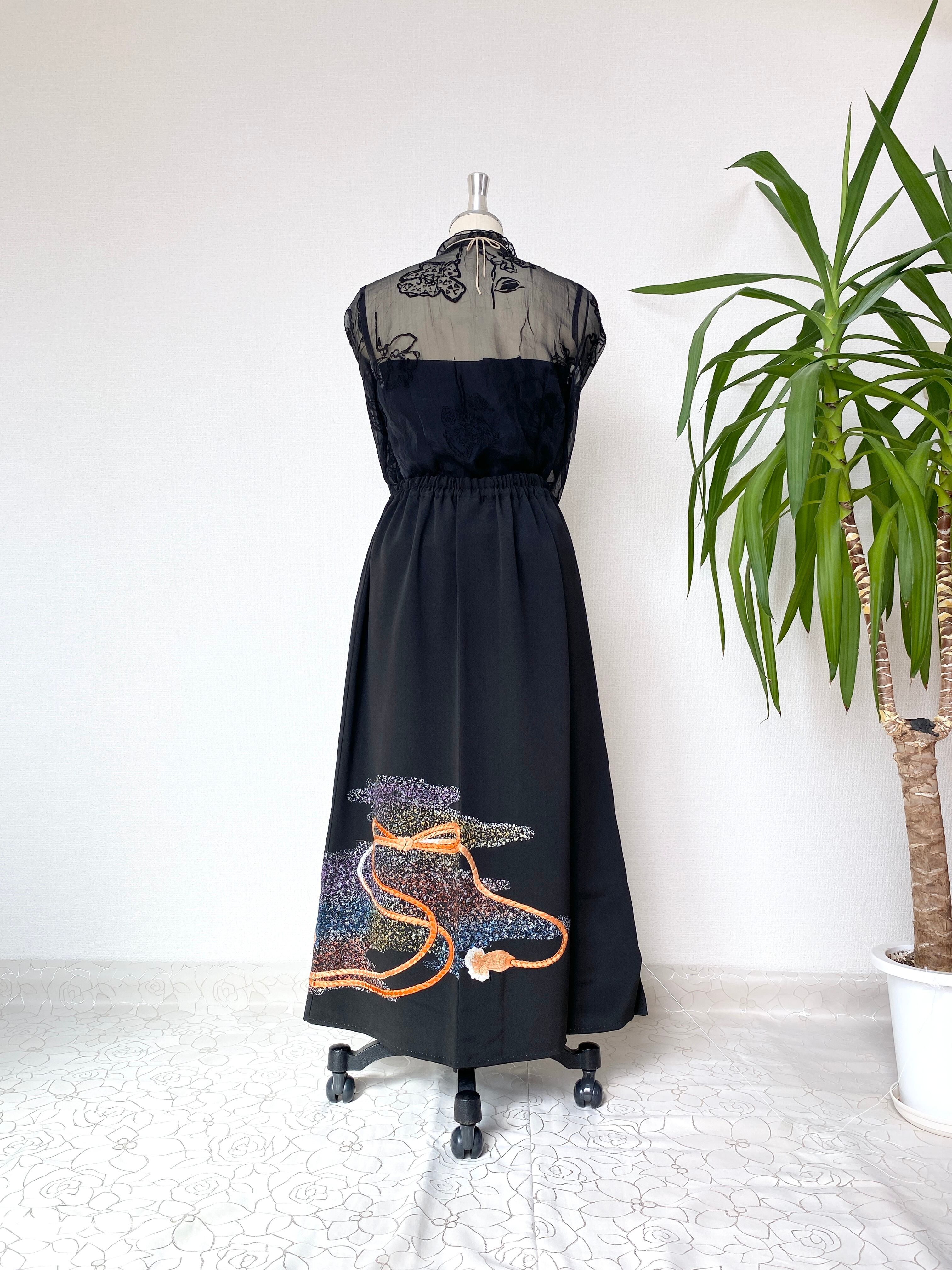 黒留袖着物リメイクウエストゴムロングスカートフリーサイズ