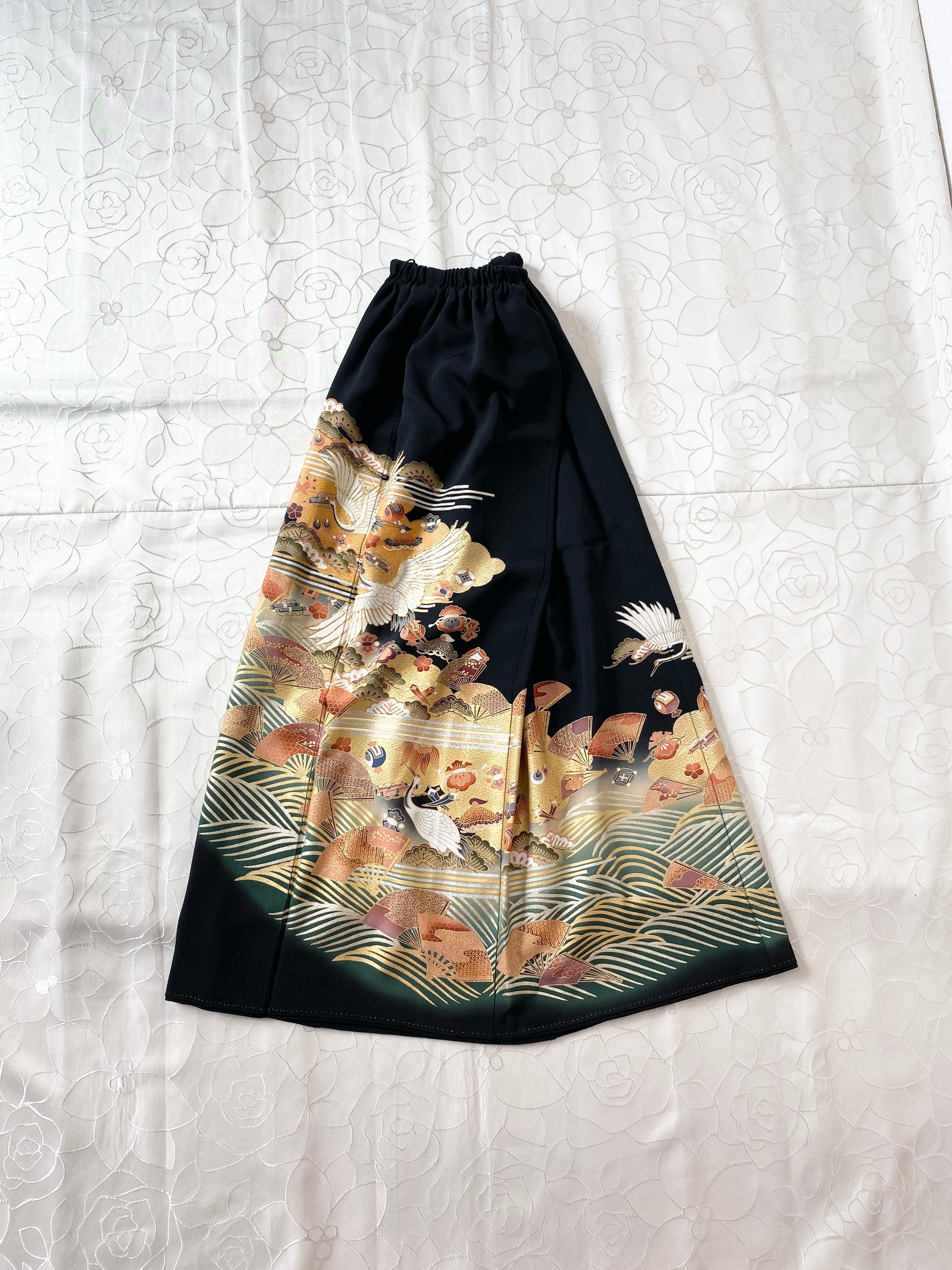 黒留袖着物リメイクウエストゴムロングスカートフリーサイズ