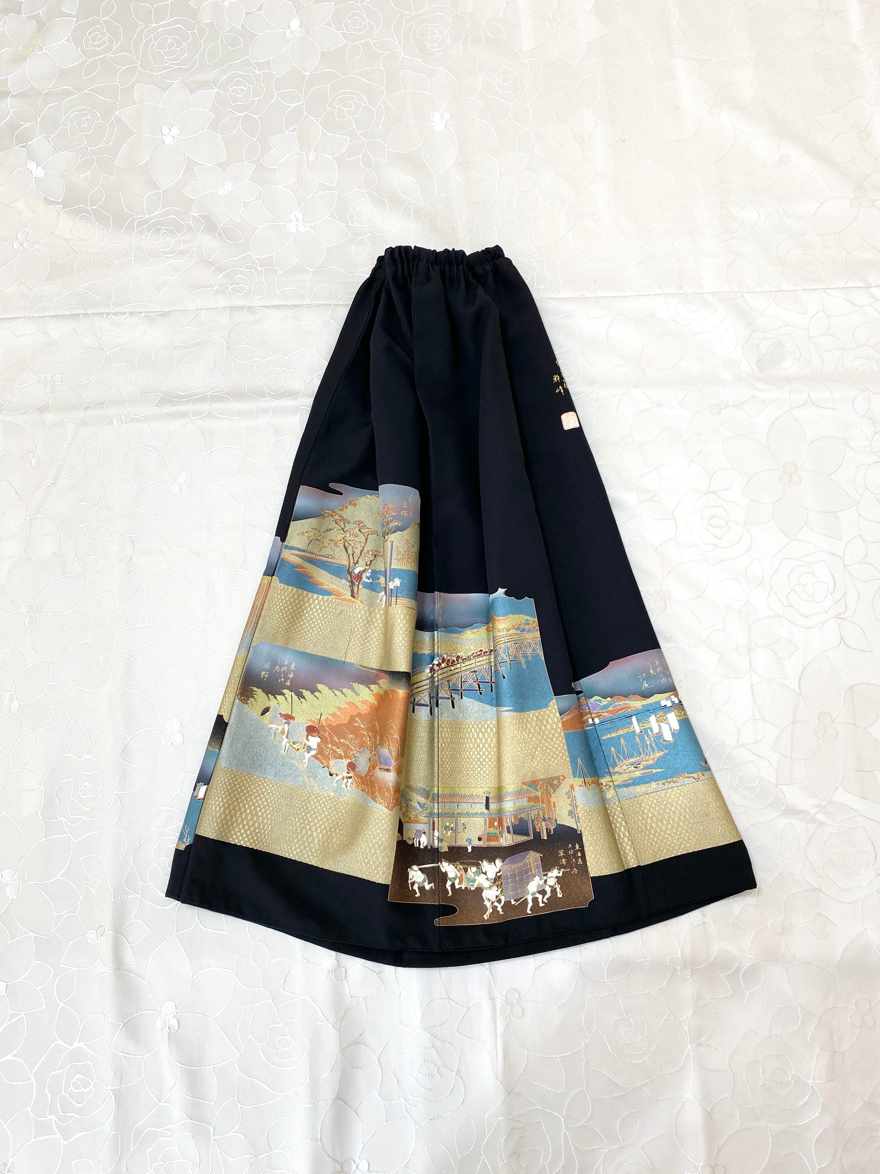 黒留袖着物リメイクウエストゴムロングスカート送料無料フリーサイズ1点物黒留袖着物リメイクウエストゴムロングスカートフリーサイズ黒留袖着物リメイクロングスカートNO.1597
