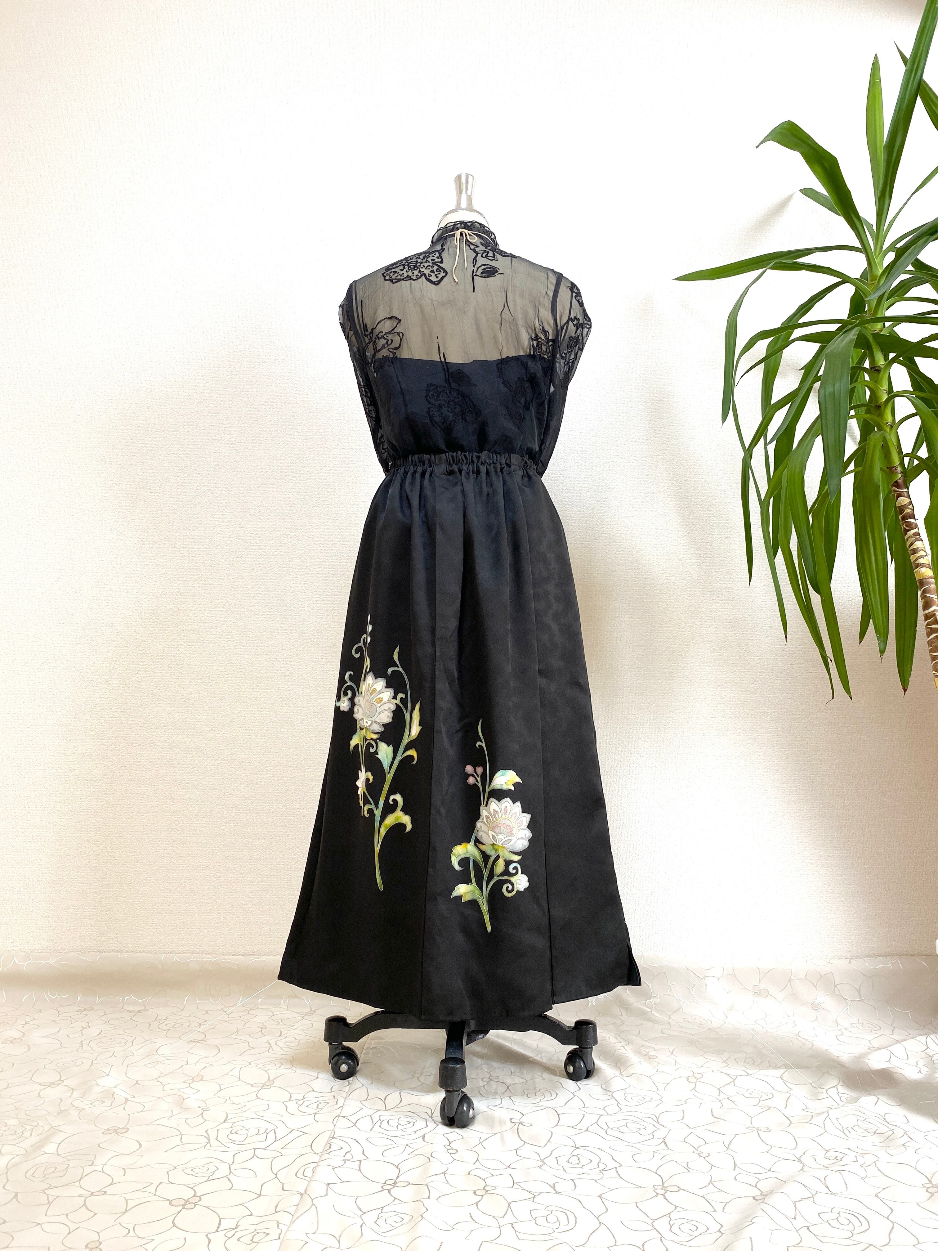 着物リメイクウエストゴムロングスカートフリーサイズ
