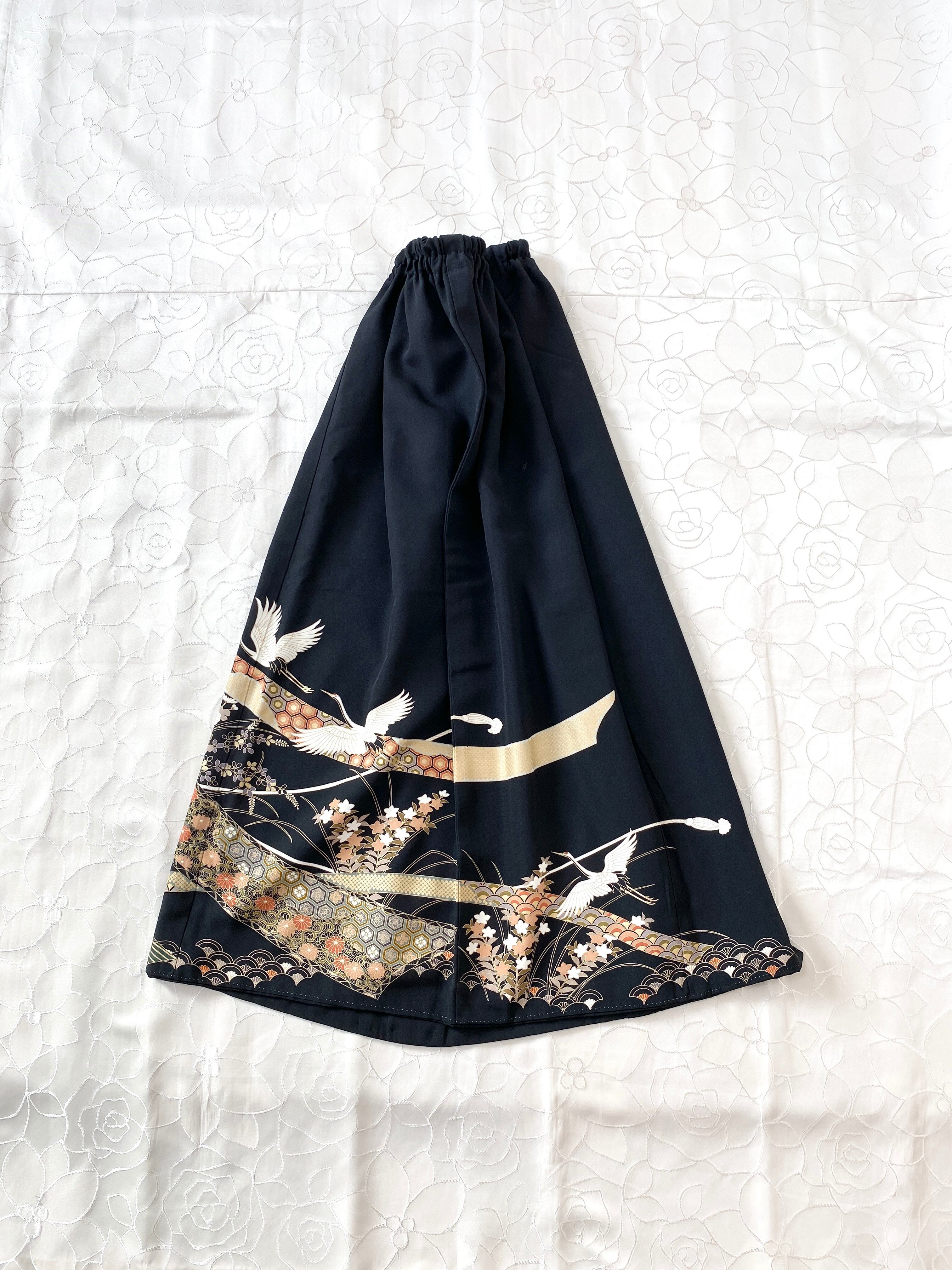 黒留袖着物リメイクウエストゴムロングスカートフリーサイズ