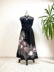 黒留袖着物リメイクウエストゴムロングスカートフリーサイズ