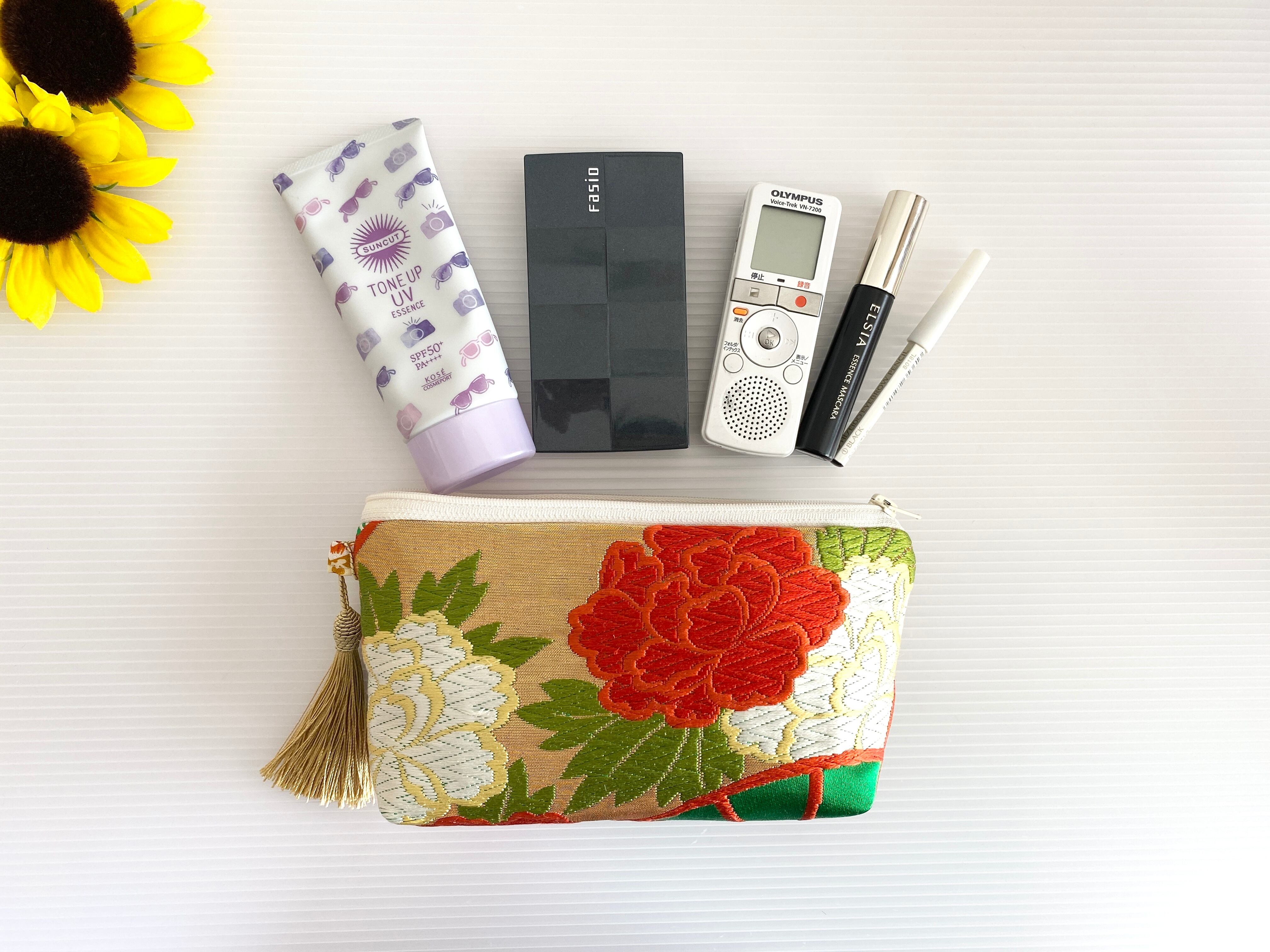 帯リメイクポーチ化粧ポーチ1点物ハンドメイド送料無料パスポート入れ通帳入れお薬手帳入れ帯リメイク化粧ポーチNO.1650