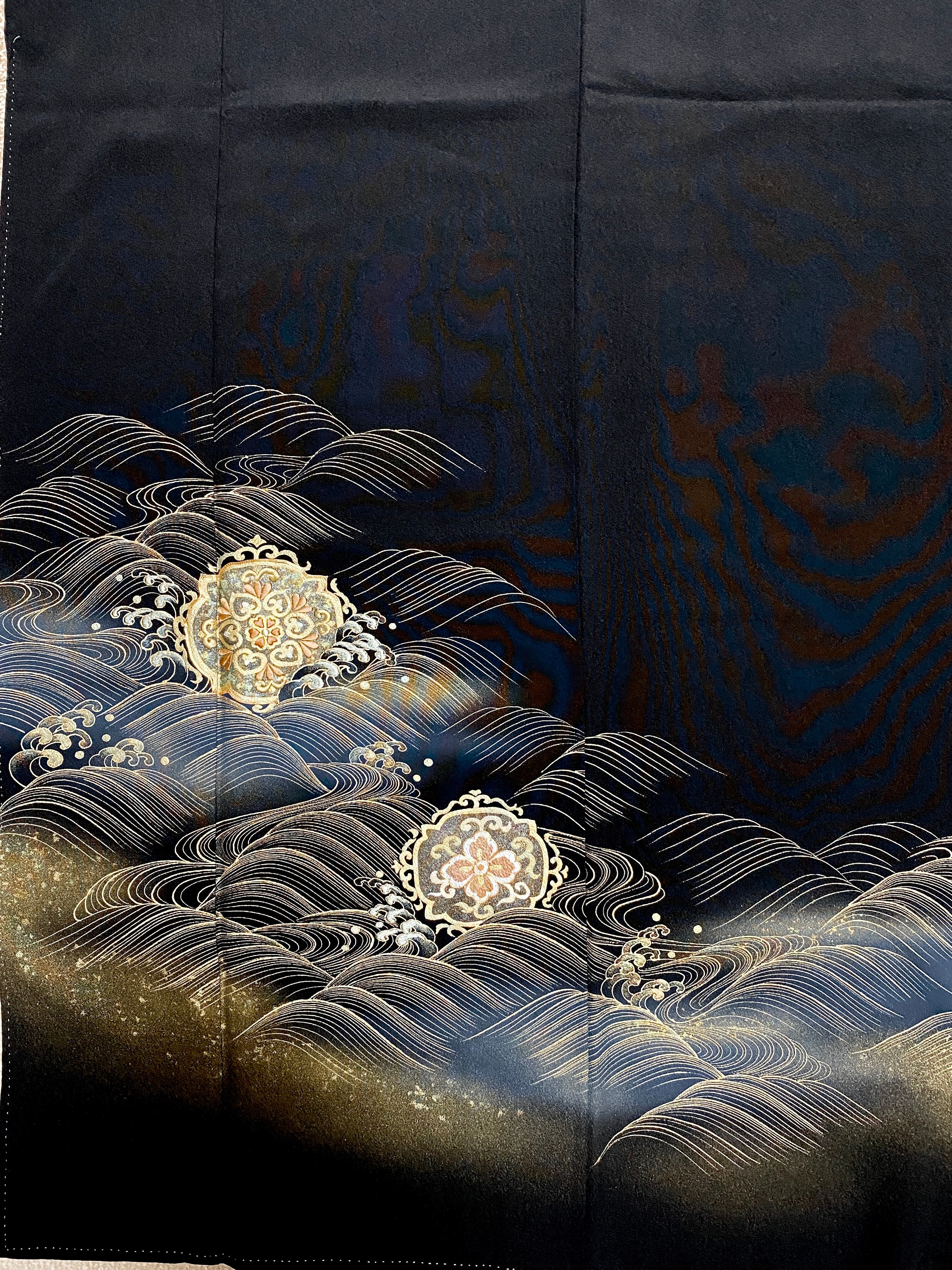 黒留袖着物リメイクウエストゴムロングスカート【超ロング丈】フリーサイズ送料無料ハンドメイド黒留袖着物リメイクウエストゴムロングスカート【超ロング丈】フリーサイズ送料無料ハンドメイドNO.1655