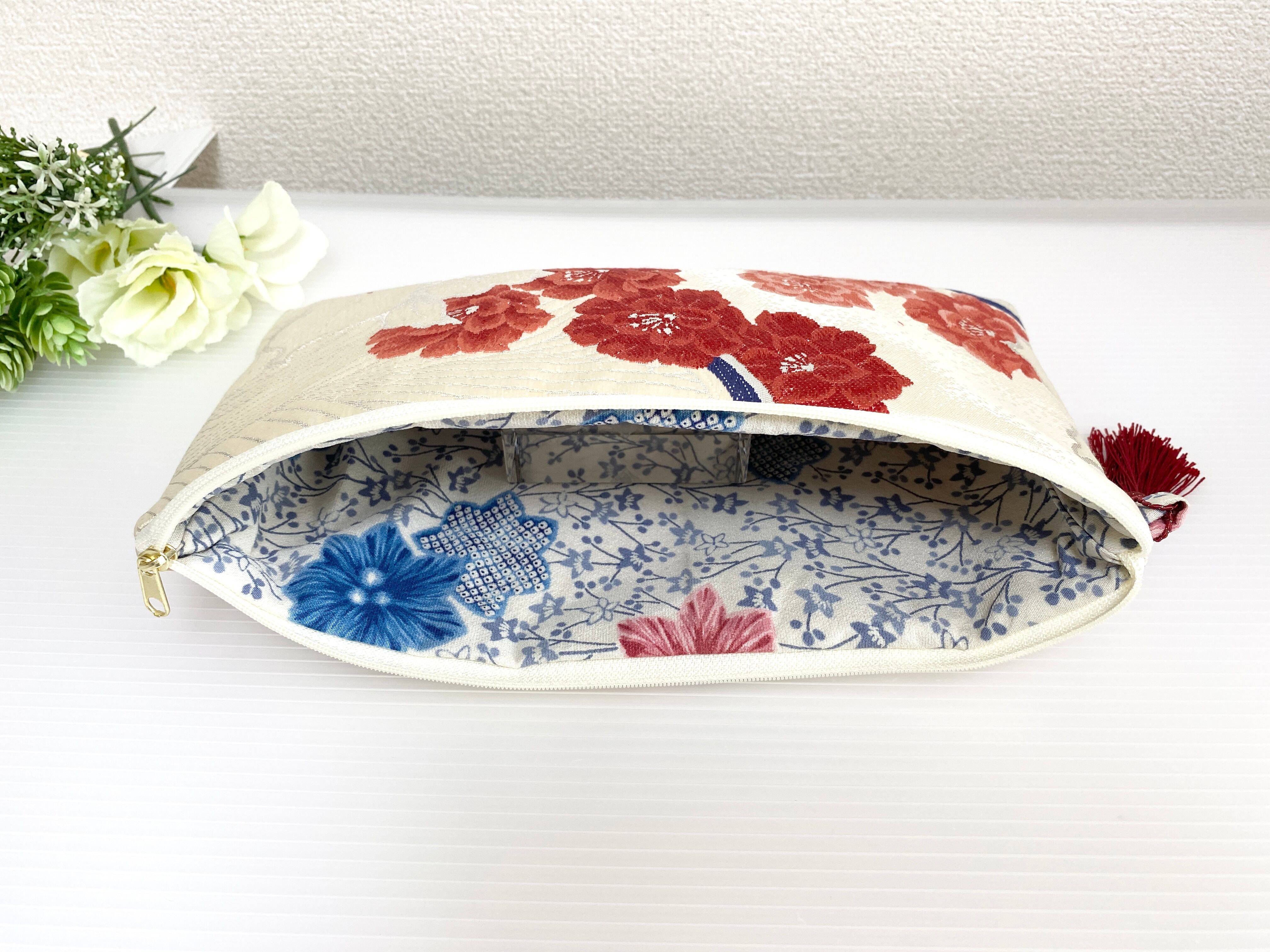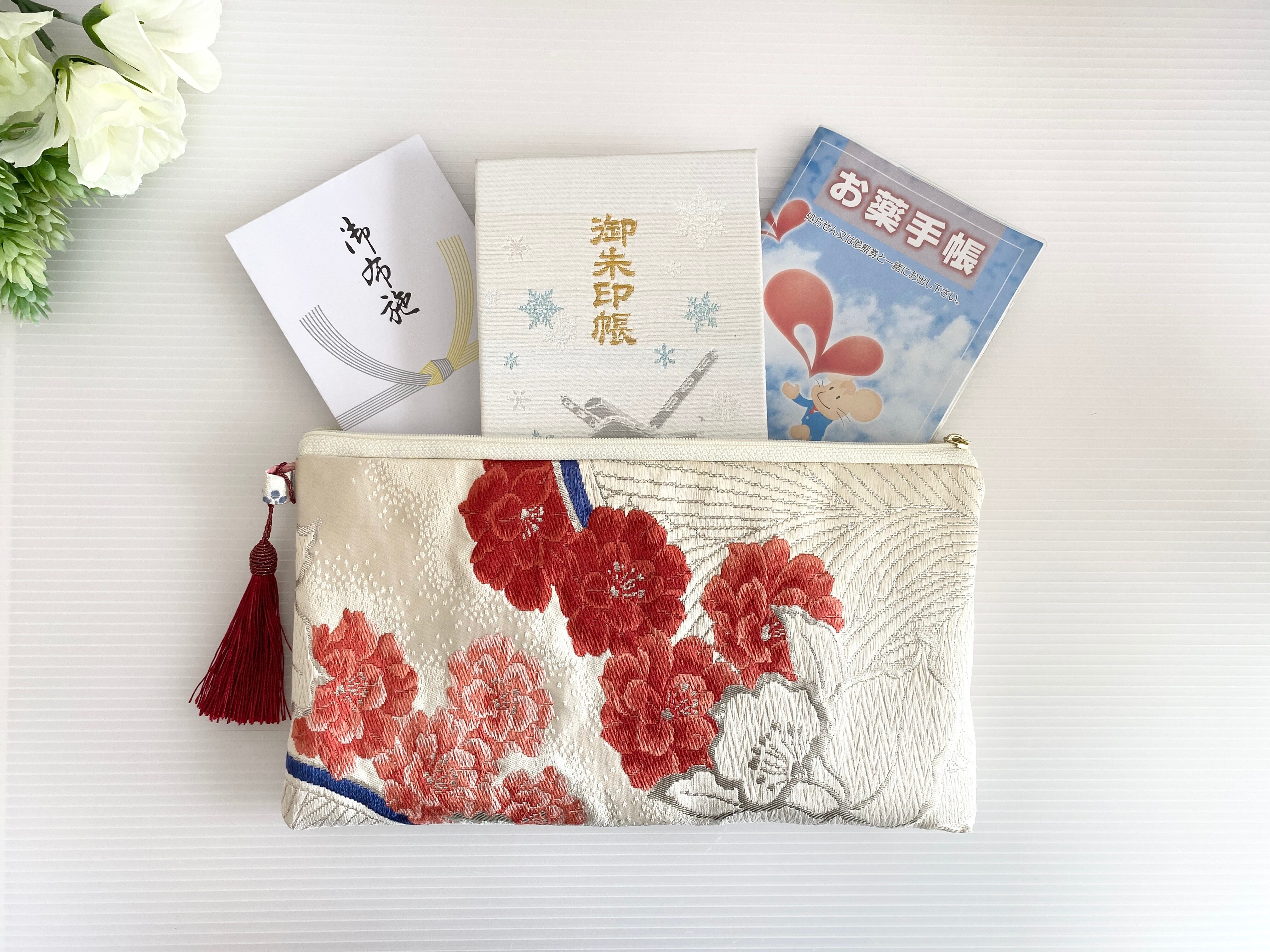 帯リメイクポーチ【大きめマチ無し】化粧ポーチ パスポート入れ 通帳入れ お薬手帳入れ 数珠入れ 御朱印帳入れ マルチケース