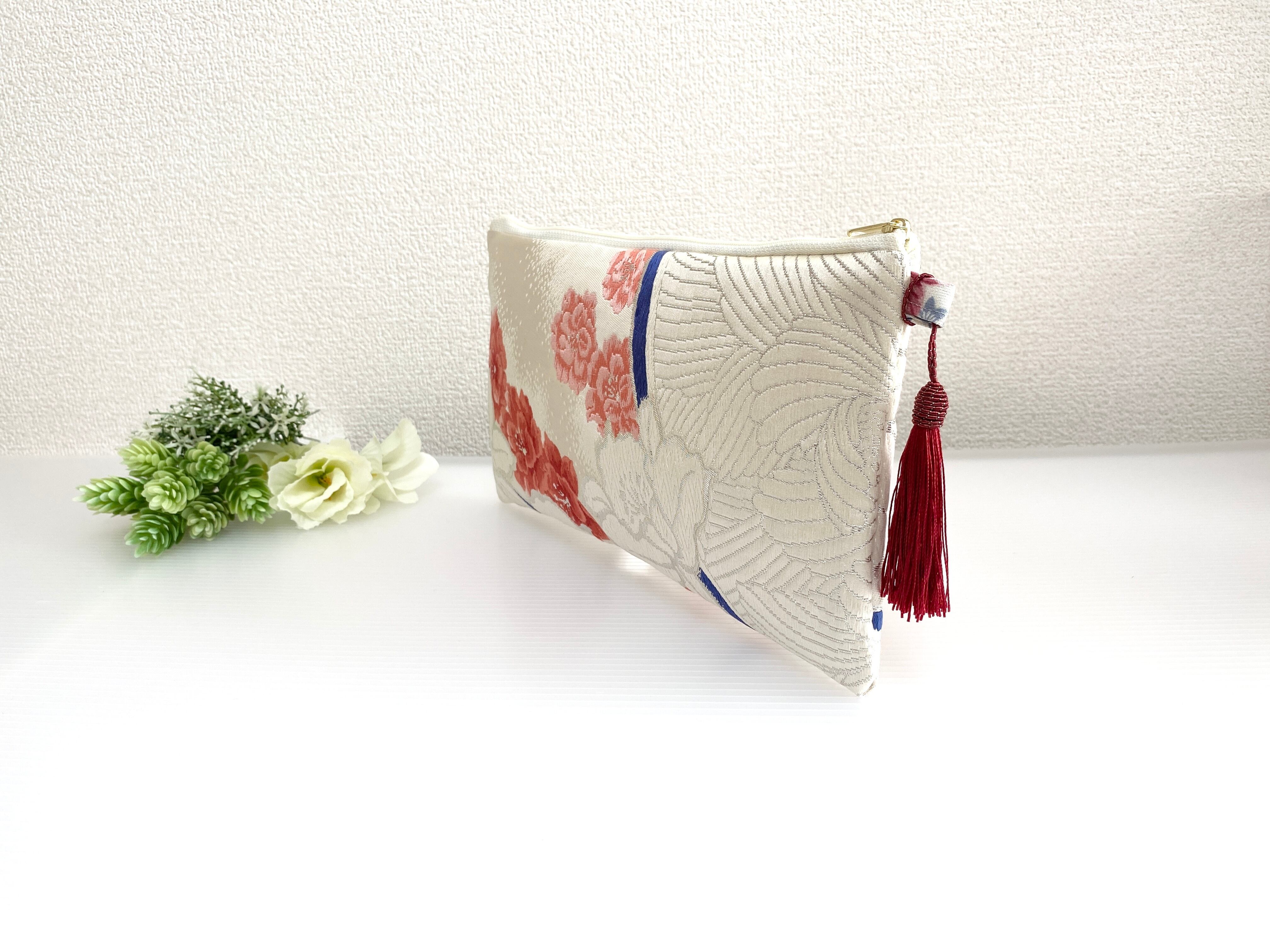 日本の古帯をリメイクして作製したポーチでハンドメイド品です。