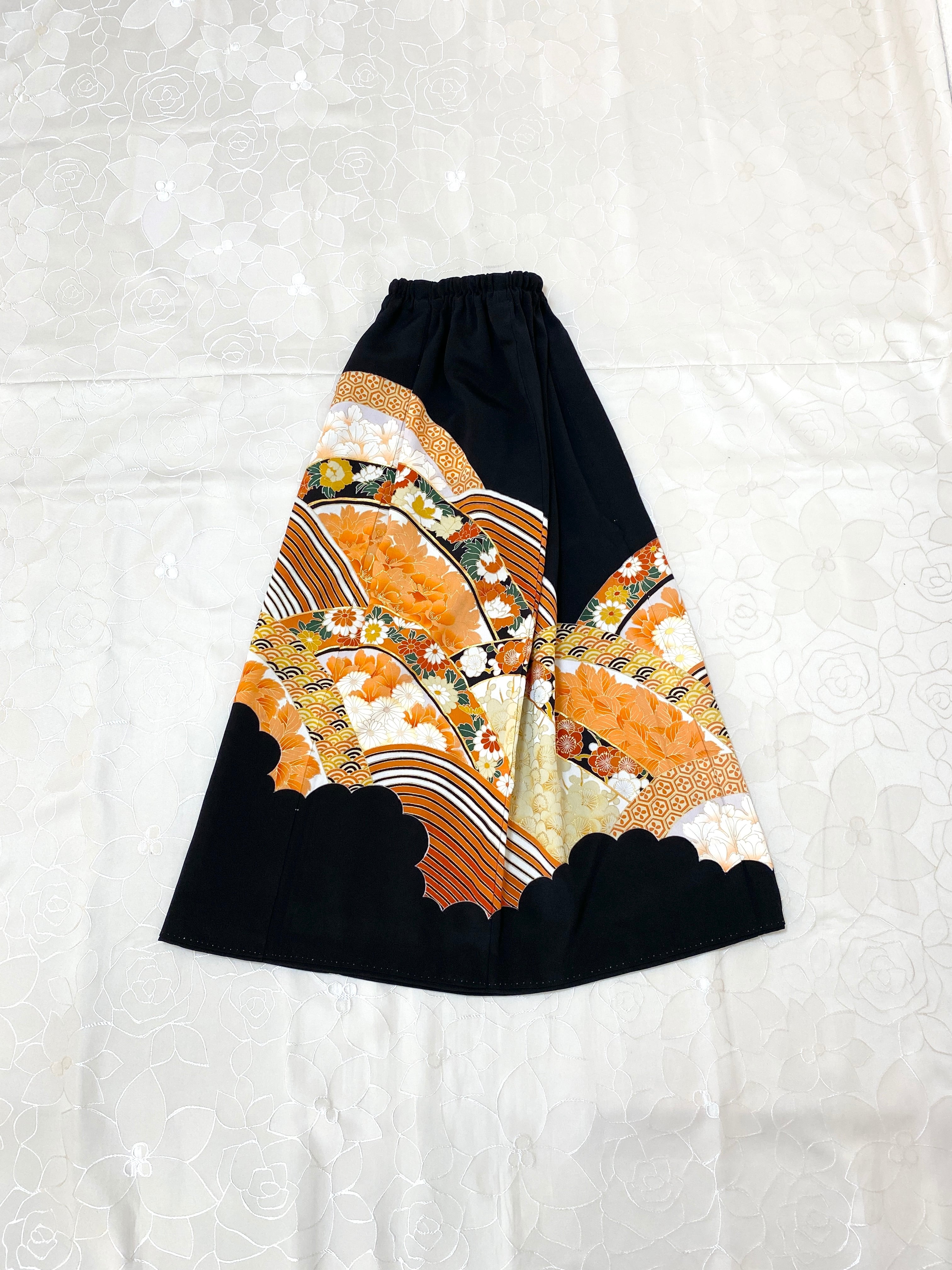 黒留袖着物リメイクウエストゴムロングスカートフリーサイズ